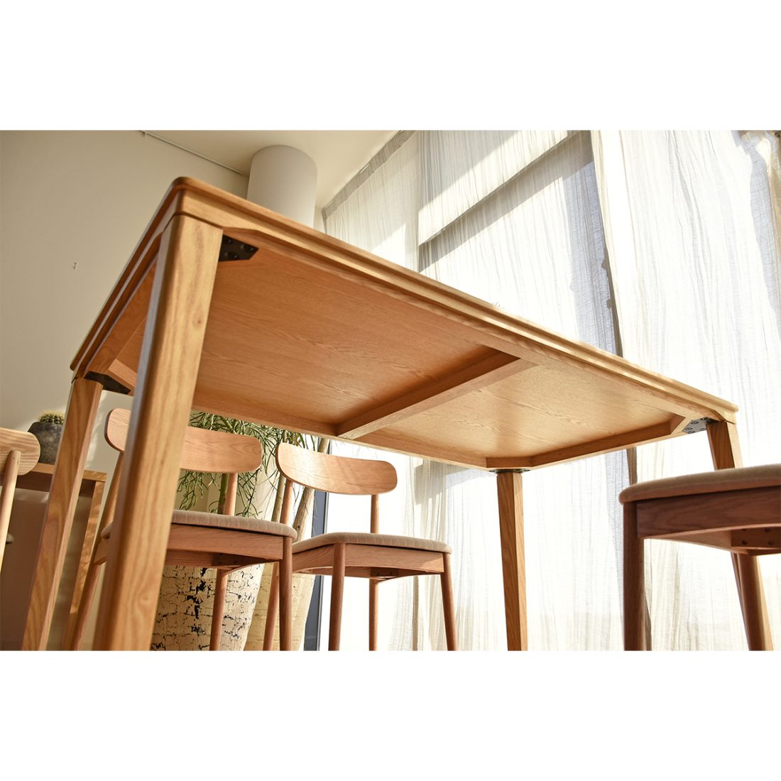 金属の脚と木天板の組み合わせが生むシャープな佇まいが魅力。複数のチェアとも合わせやすい普遍的なデザインです。
