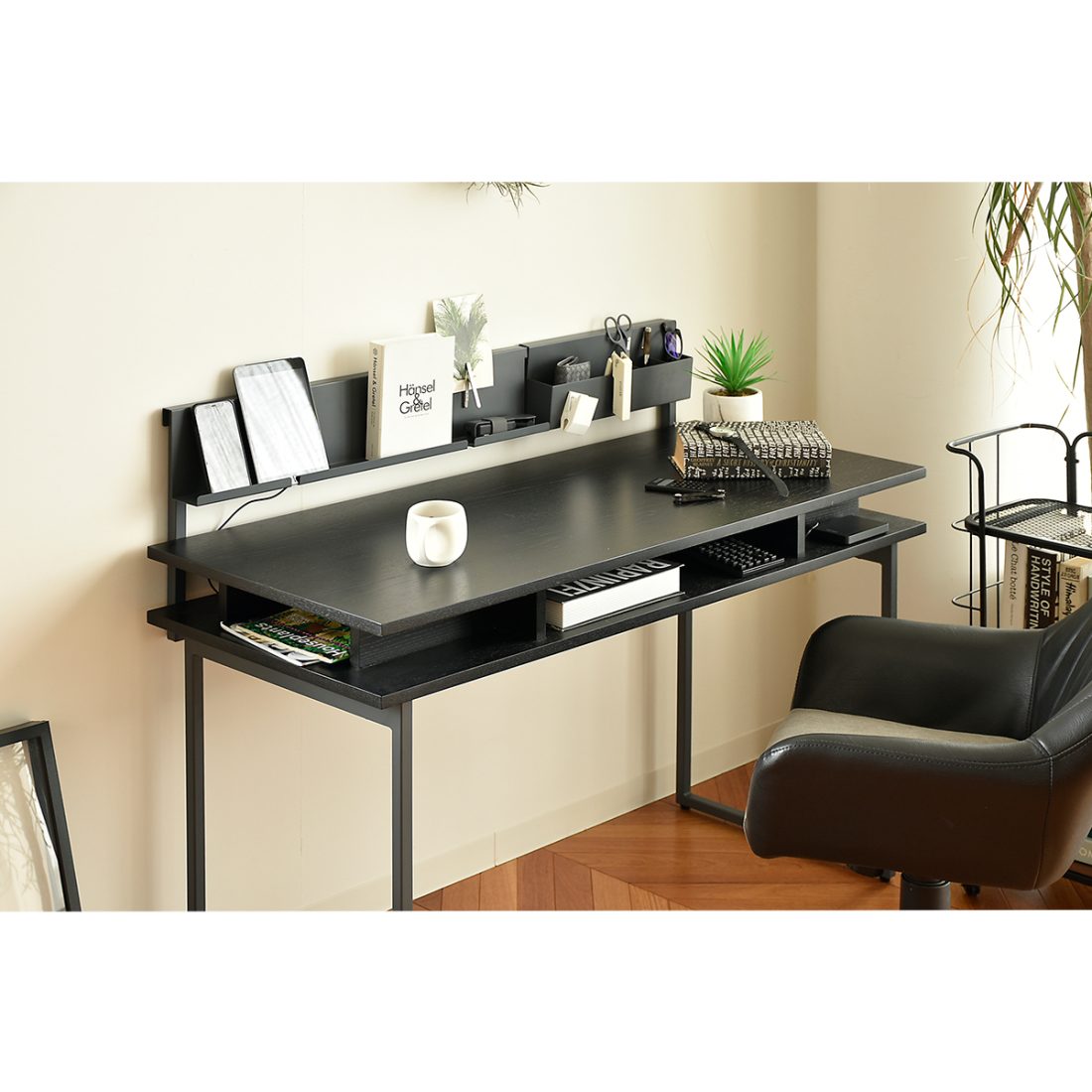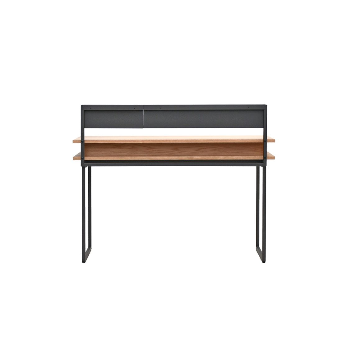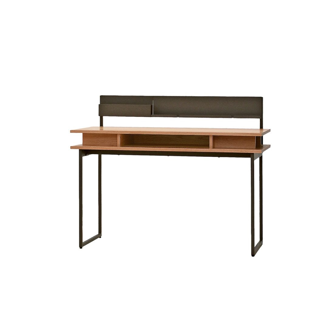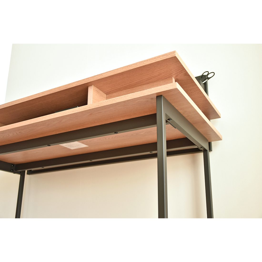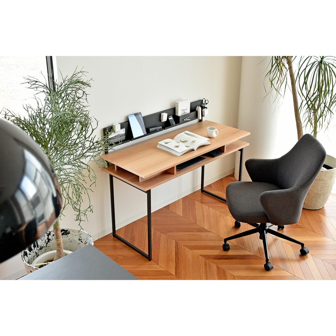 すっきりとした脚部と落ち着いた木目の天板でまとめたワークデスク。奥行を抑えたサイズ感で、リビング学習やテレワークにも取り入れやすい一台です。