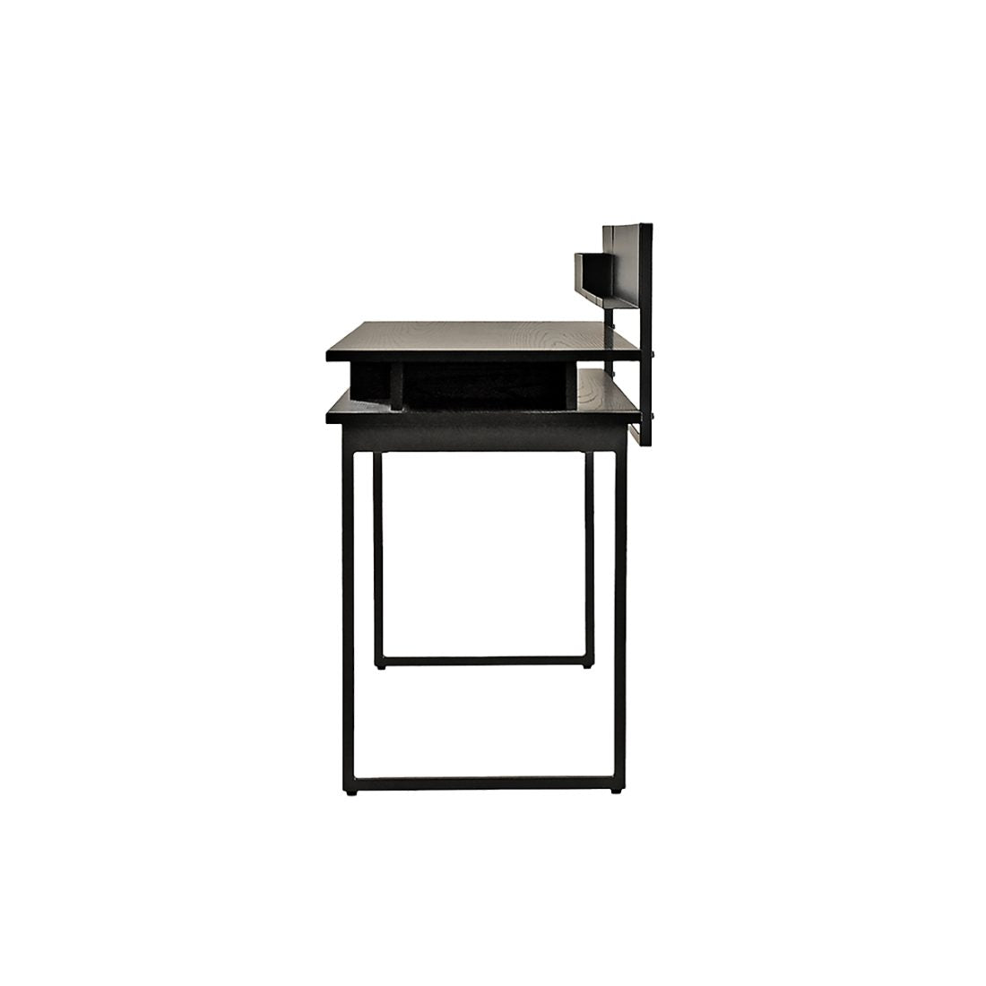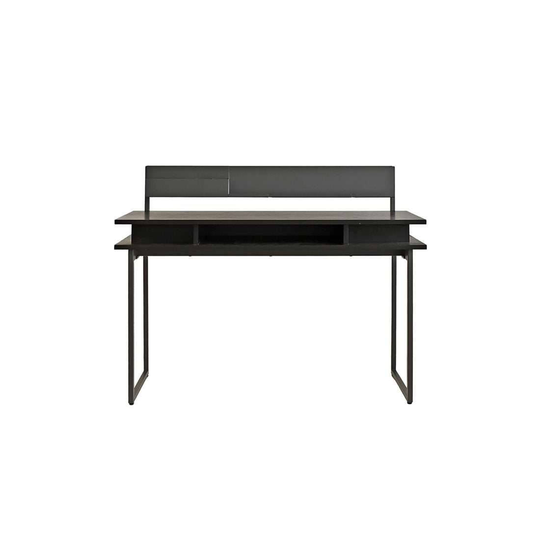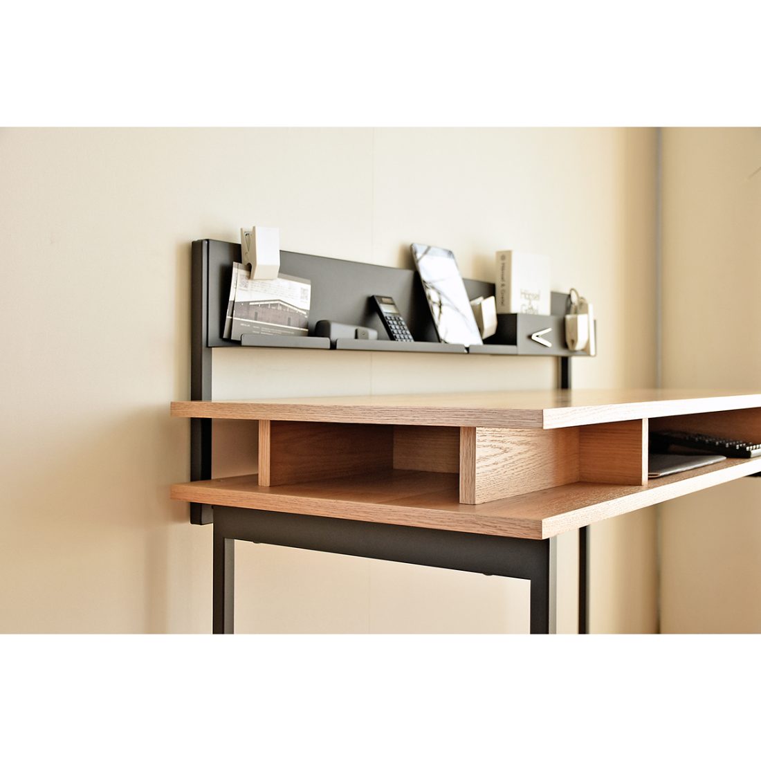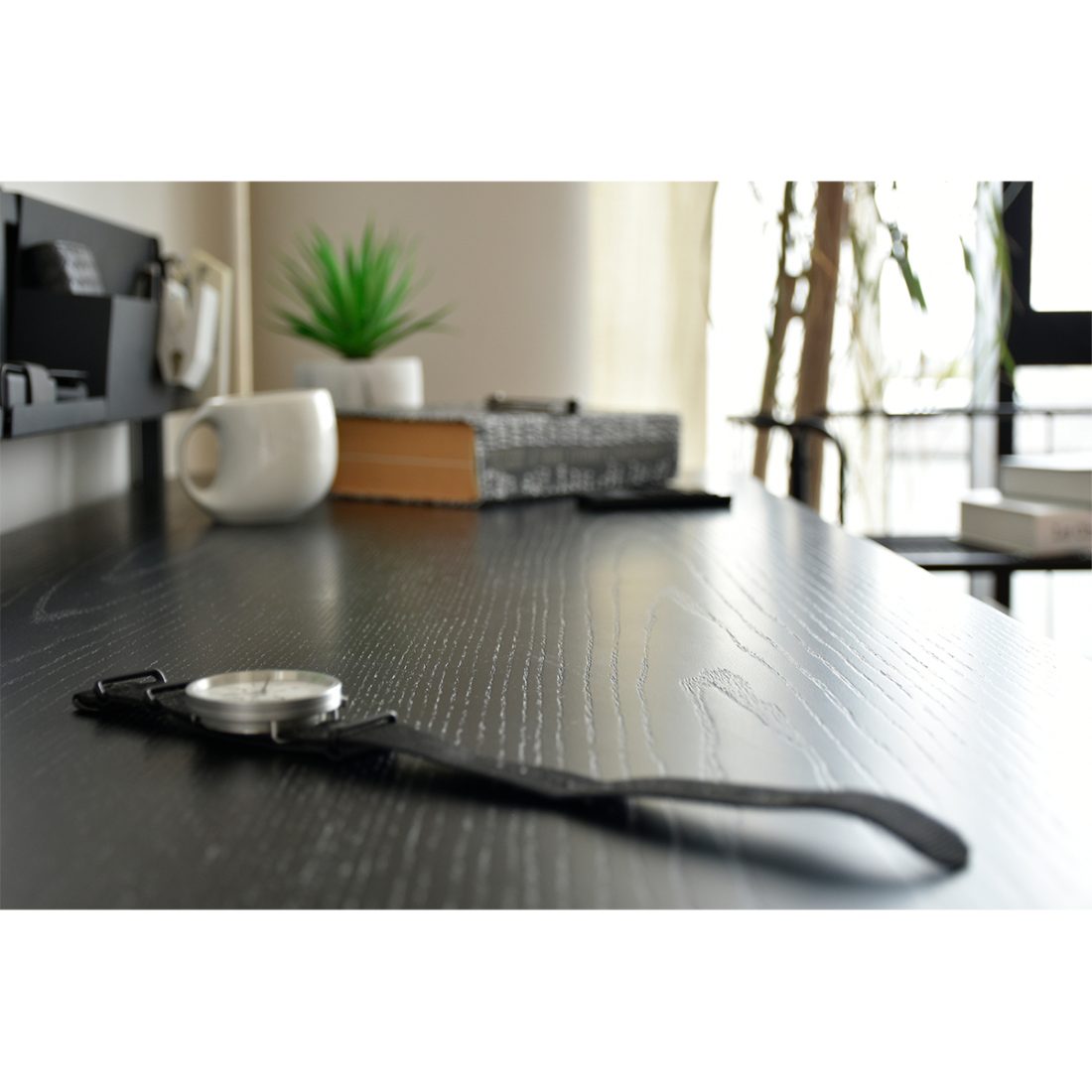 すっきりとした脚部と落ち着いた木目の天板でまとめたワークデスク。奥行を抑えたサイズ感で、リビング学習やテレワークにも取り入れやすい一台です。