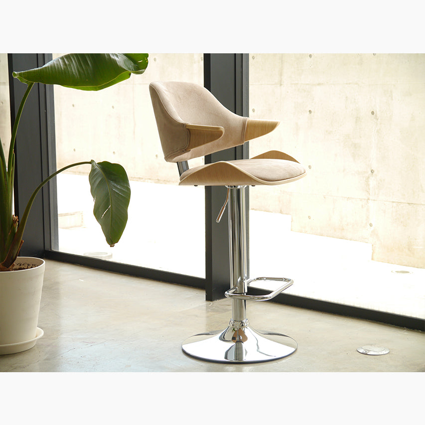 座面高を幅広く調整できるガス昇降式のハイチェアです。フットレスト付きで安定感があり、長時間でも快適です。