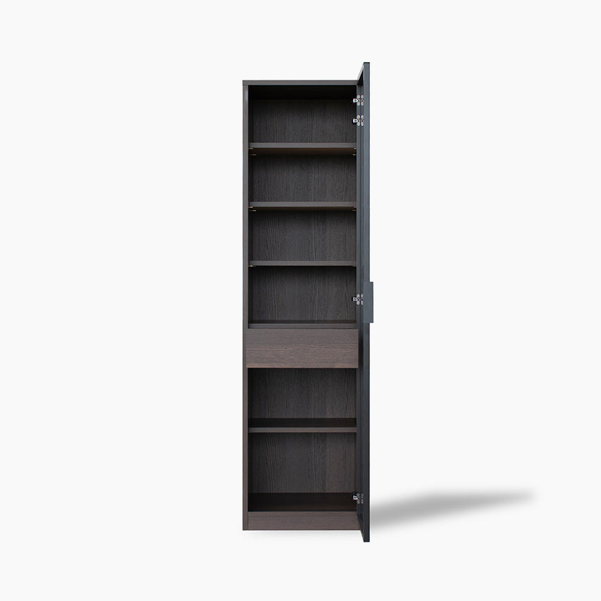 ラタン風の籐調素材とスチール、木部を組み合わせた縦型ストレージです。高さのある“H”は見せる収納と隠す収納をバランスよく備え、リビング小物をざっくりと整理しながらインテリアのアクセントになります。
