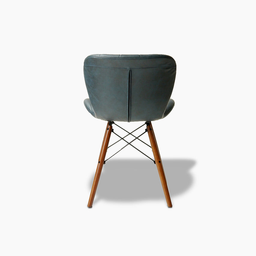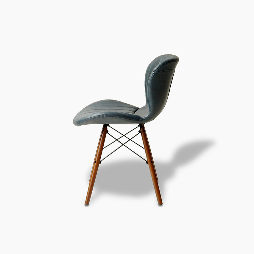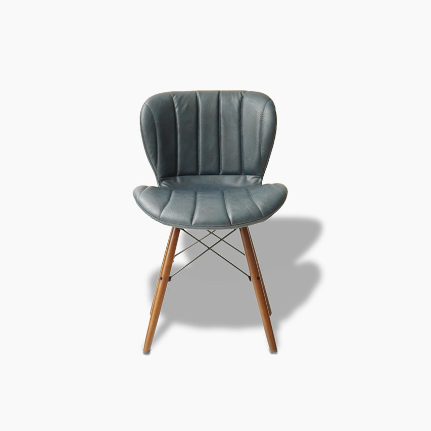 使い込んだ革のような質感の張地が魅力のチェアです。丸みを帯びたシルエットとステッチの表情で、ダイニングにやさしいアクセントを添えます。
