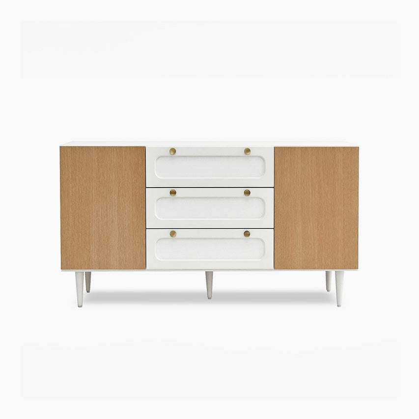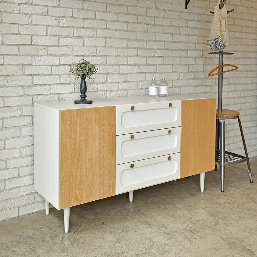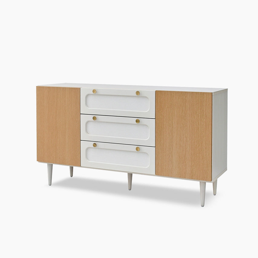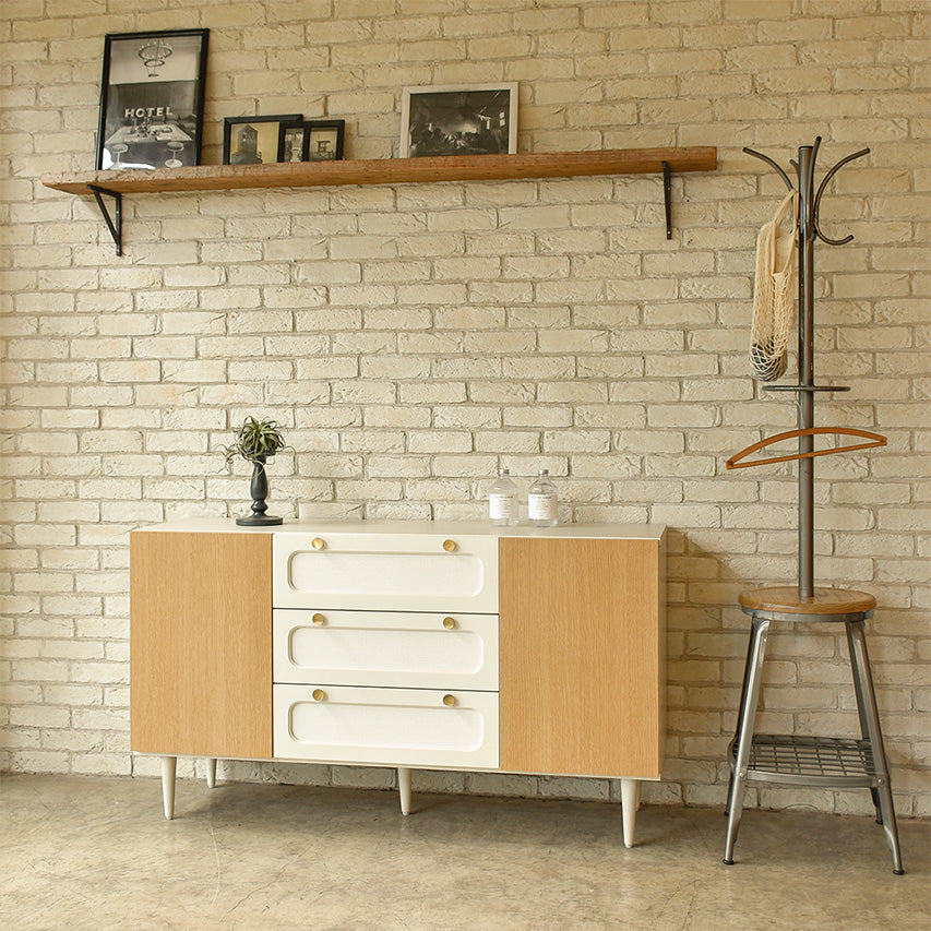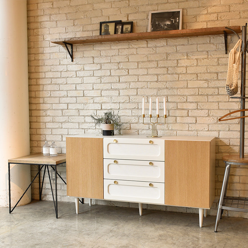 ラッカー塗装の前板とラバーウッド脚で、優しい光沢と軽快な佇まいを両立したサイドボードです。