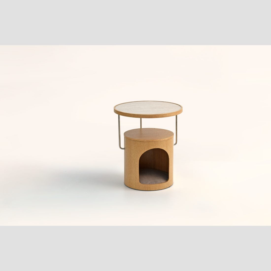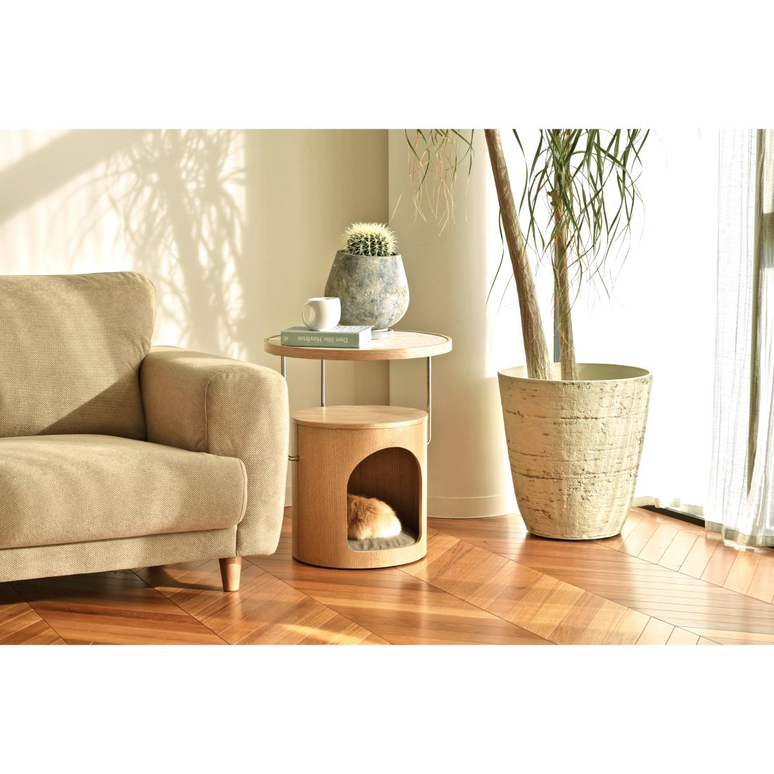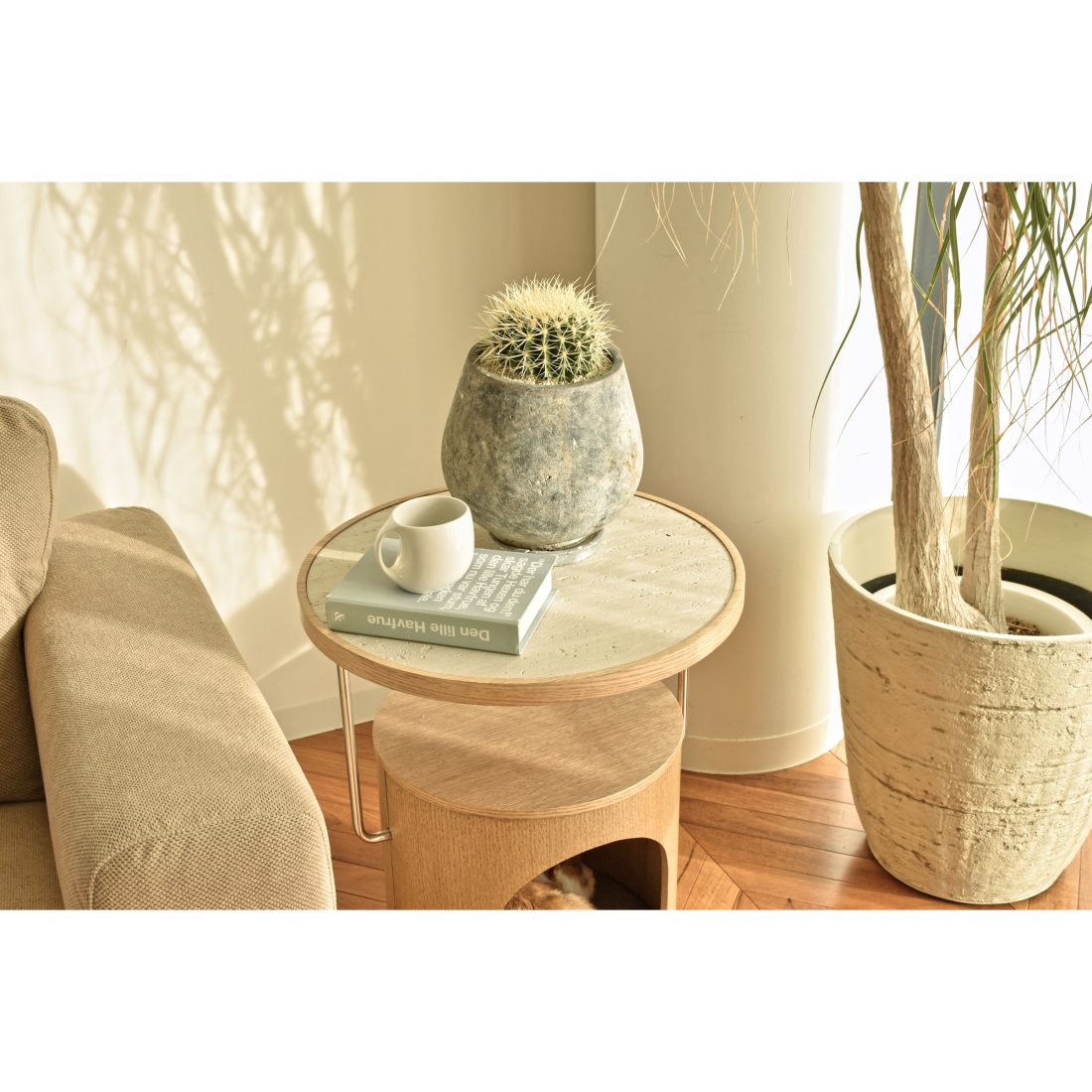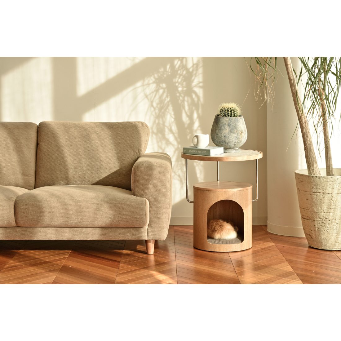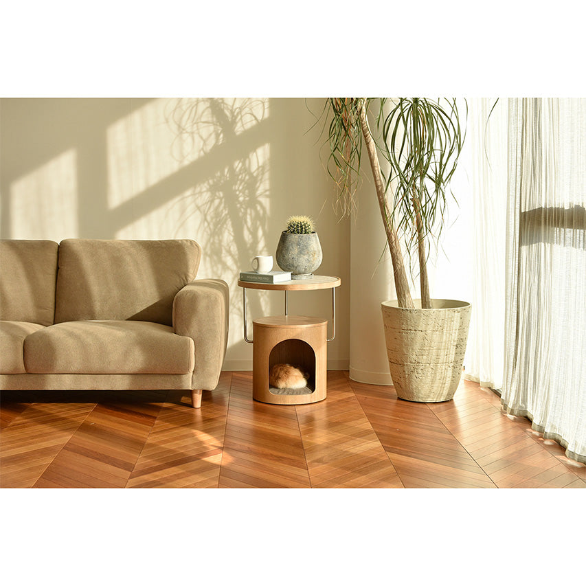 ベッドサイドに置きやすいサイズのナイトテーブルです。天板と小物収納を備え、目覚ましや書籍など就寝前のアイテムをスマートにまとめられます。