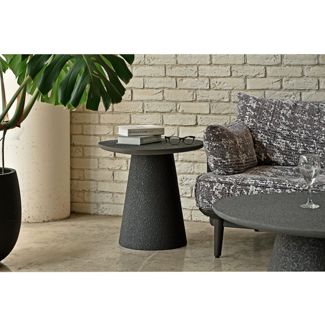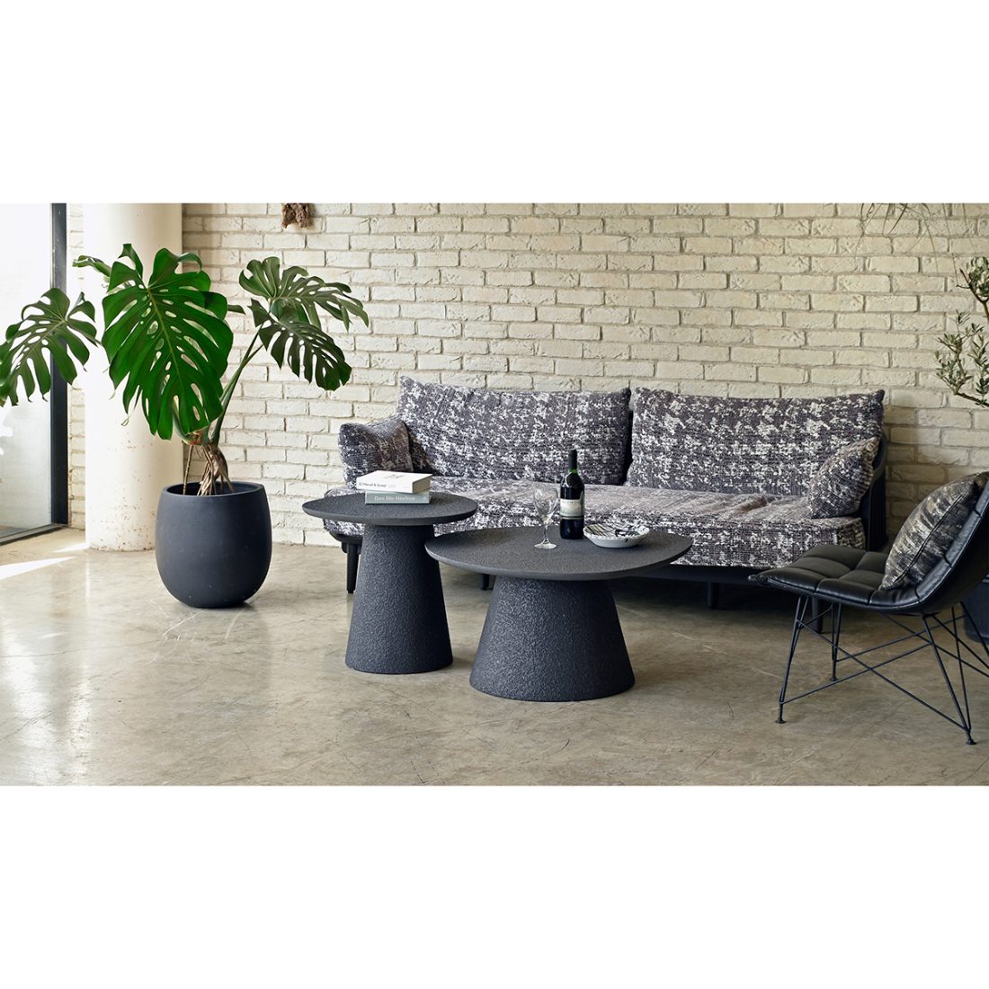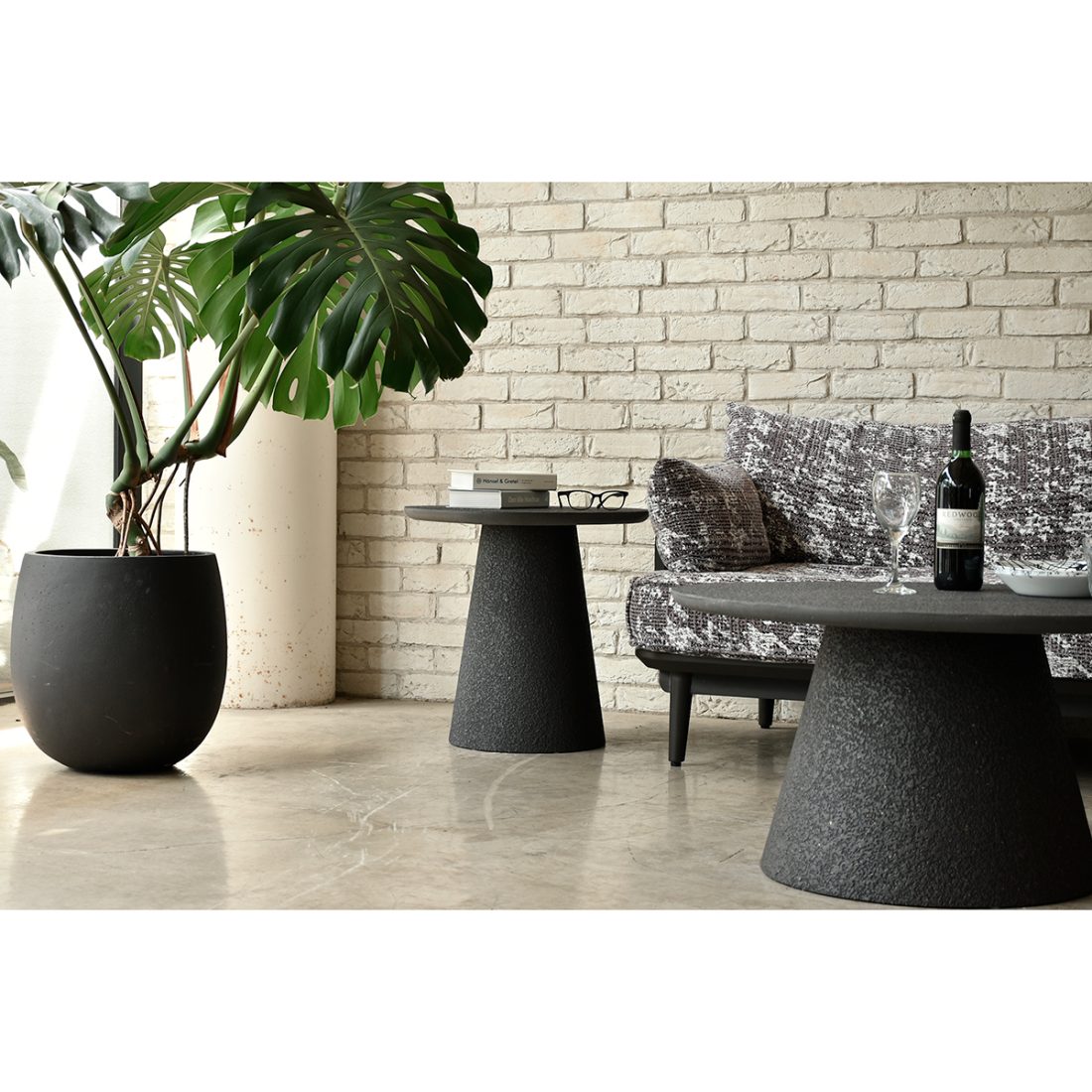 ソファ横に置きやすいサイズの円形サイドテーブルです。軽やかな脚部デザインで、移動やレイアウト変更も手軽に行えます。