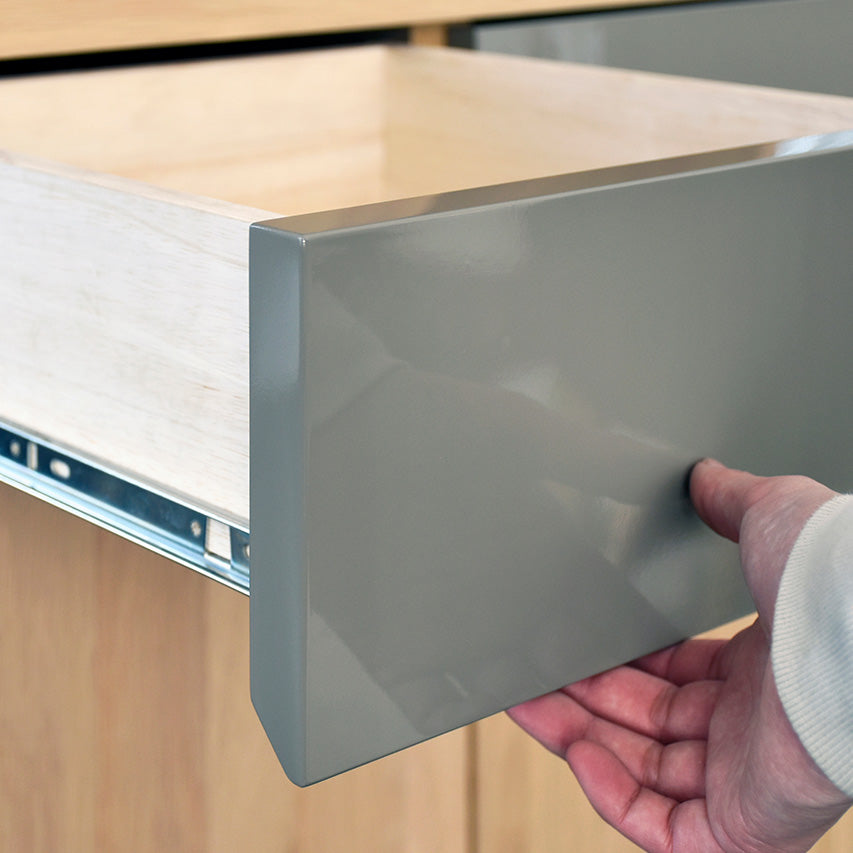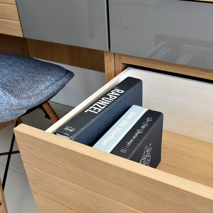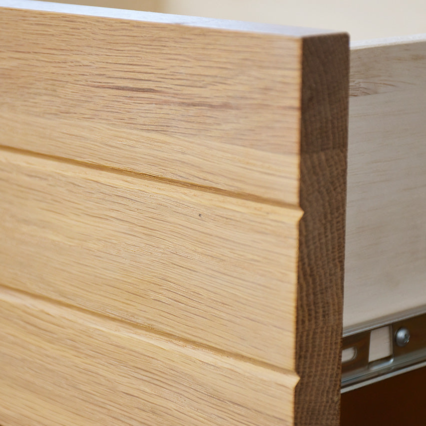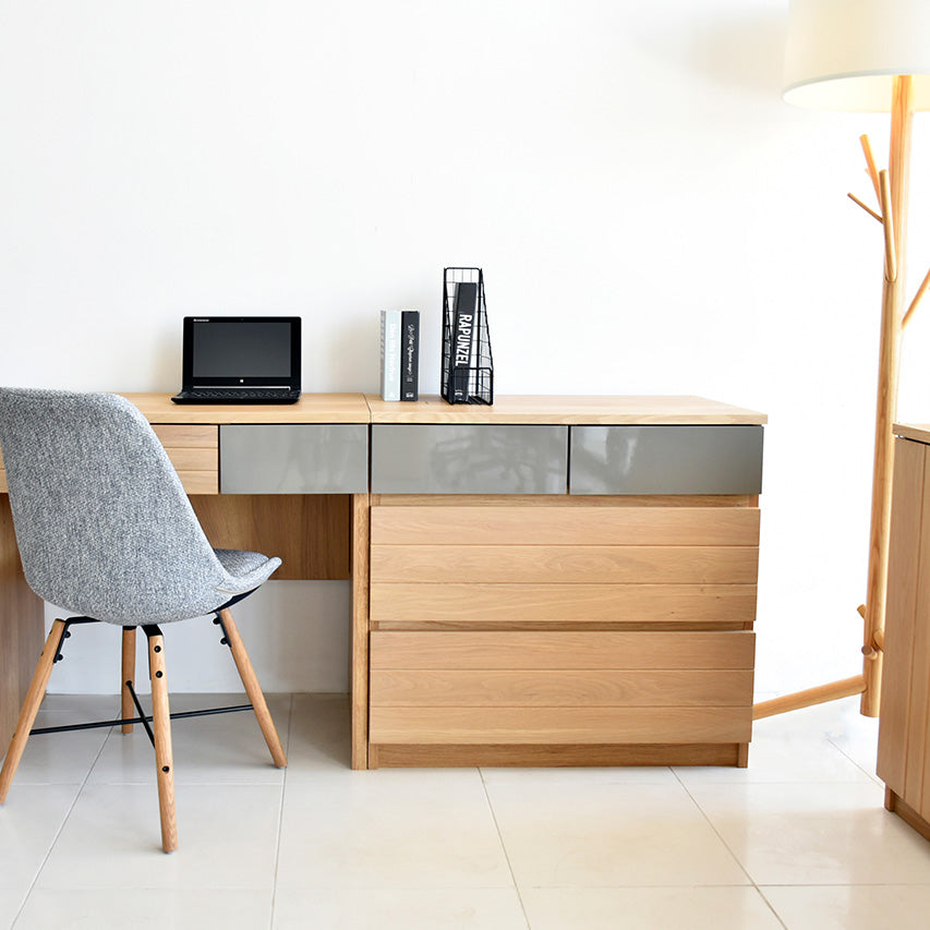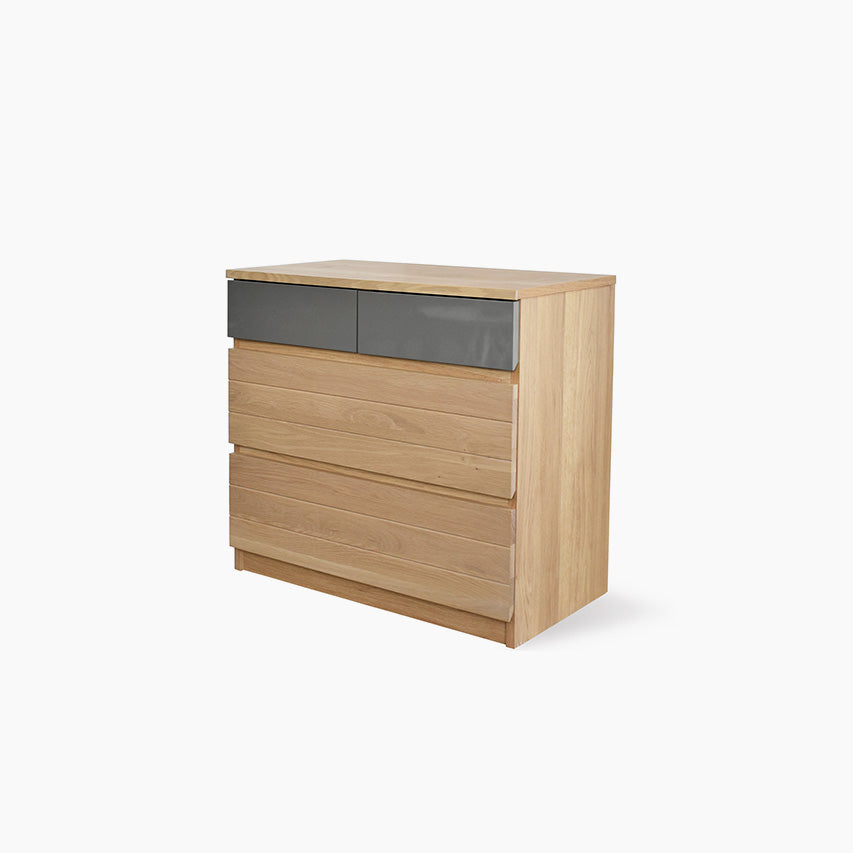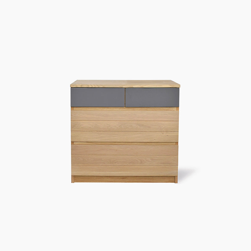 幅80cmで3段のチェストです。ウッド×スチール脚の直線的ミニマルがとても素敵で、衣類や日用品の仕分けに便利です。