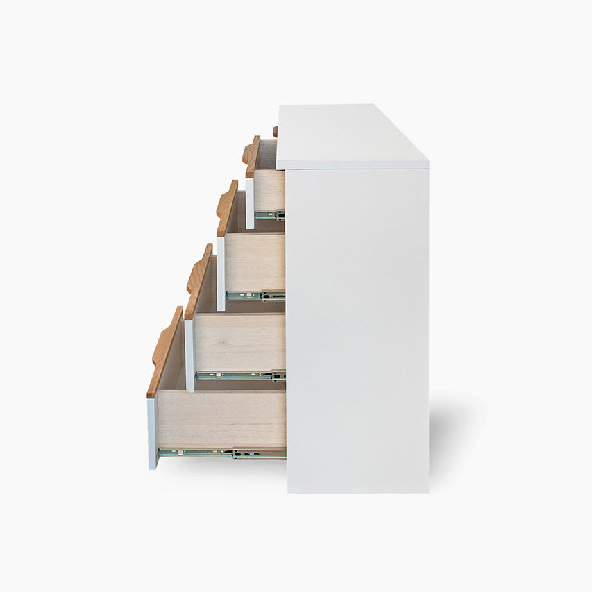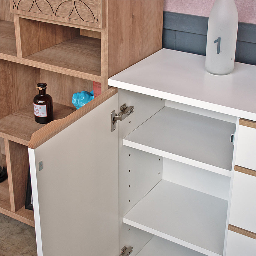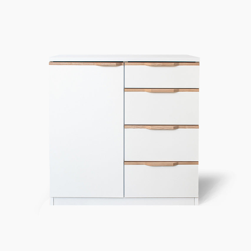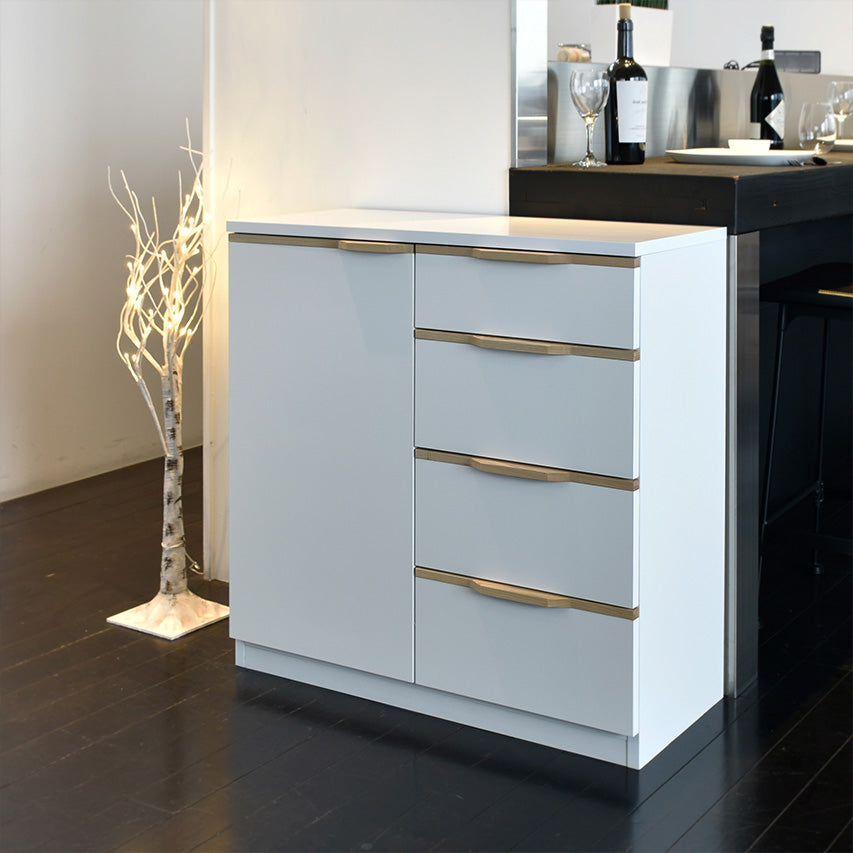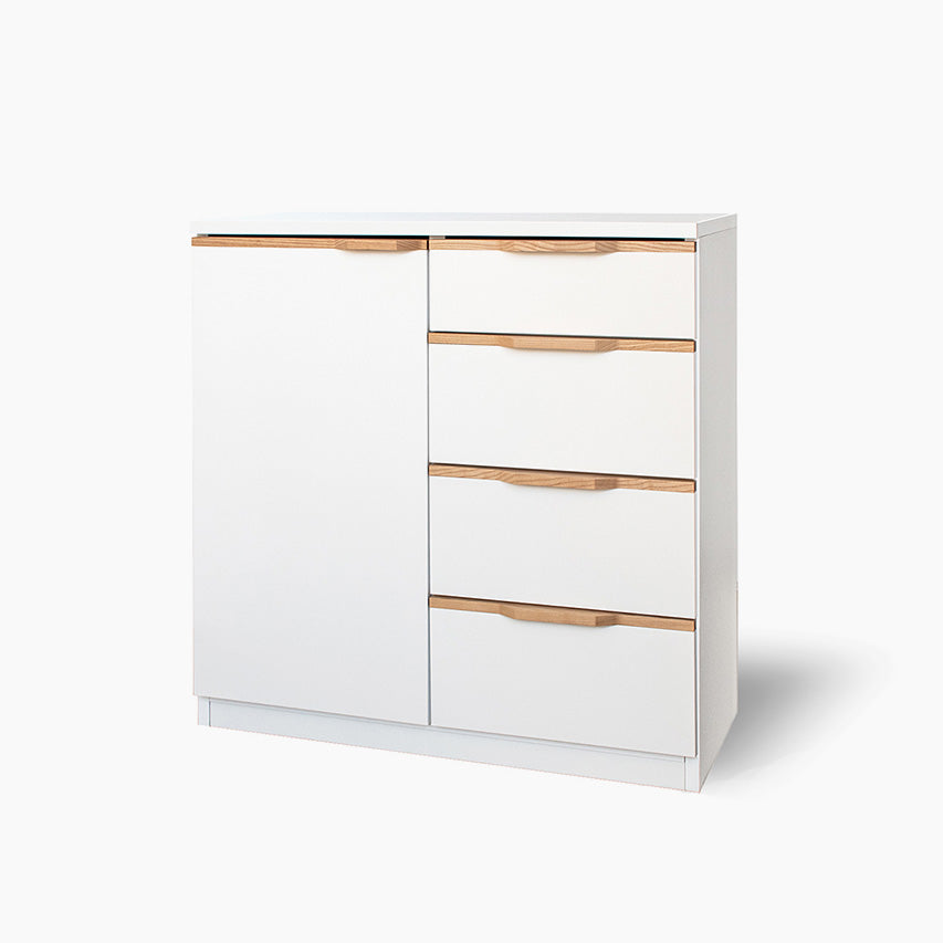 幅80cmのスリムキャビネットです。奥行が浅く圧迫感を抑えながら、日用品や書籍をすっきりと隠して収納できます。シリーズで揃えると統一感のある壁面収納がつくれます。