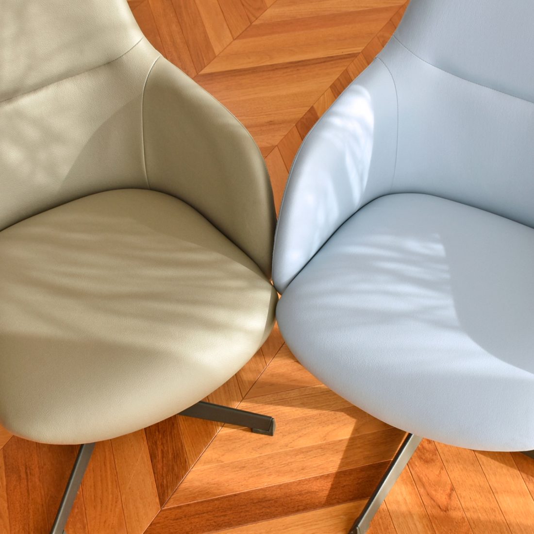 直線と曲線のバランスが美しいシェル型の座面にスチール脚を合わせた一脚。軽快な見た目ながらしっかりとした座り心地で、ダイニングをモダンに引き締めます。