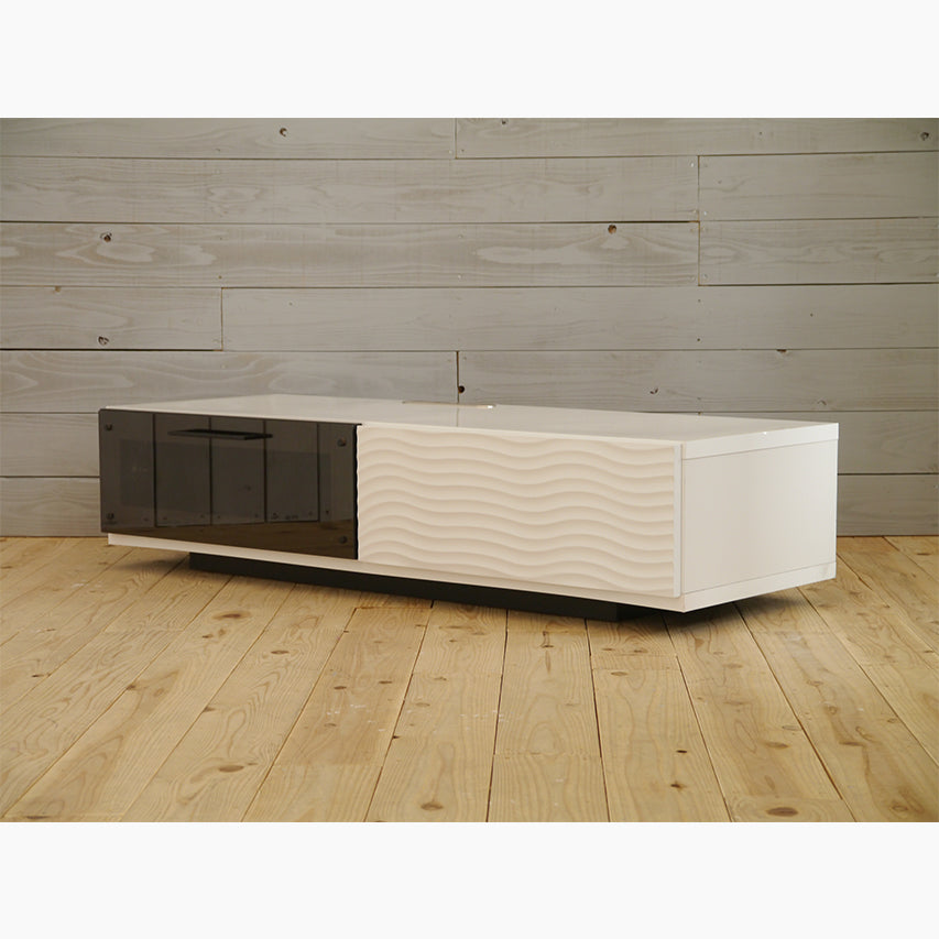 幅120cmのローボードです。控えめな装飾とフラットな面構成で、コンパクト空間でも重たく見えません。