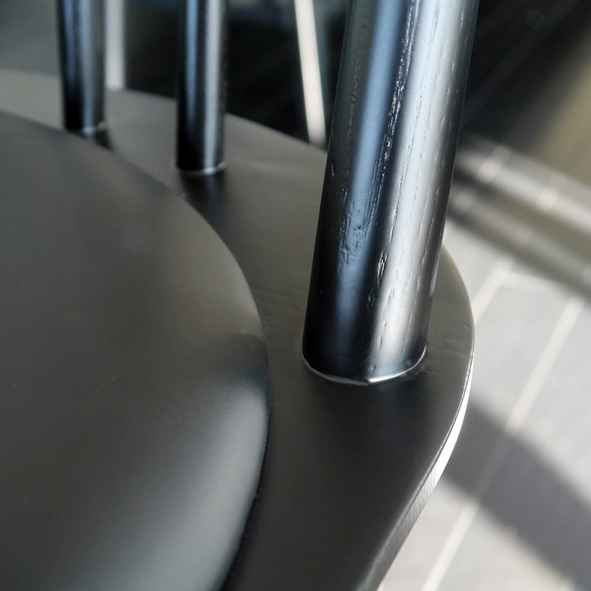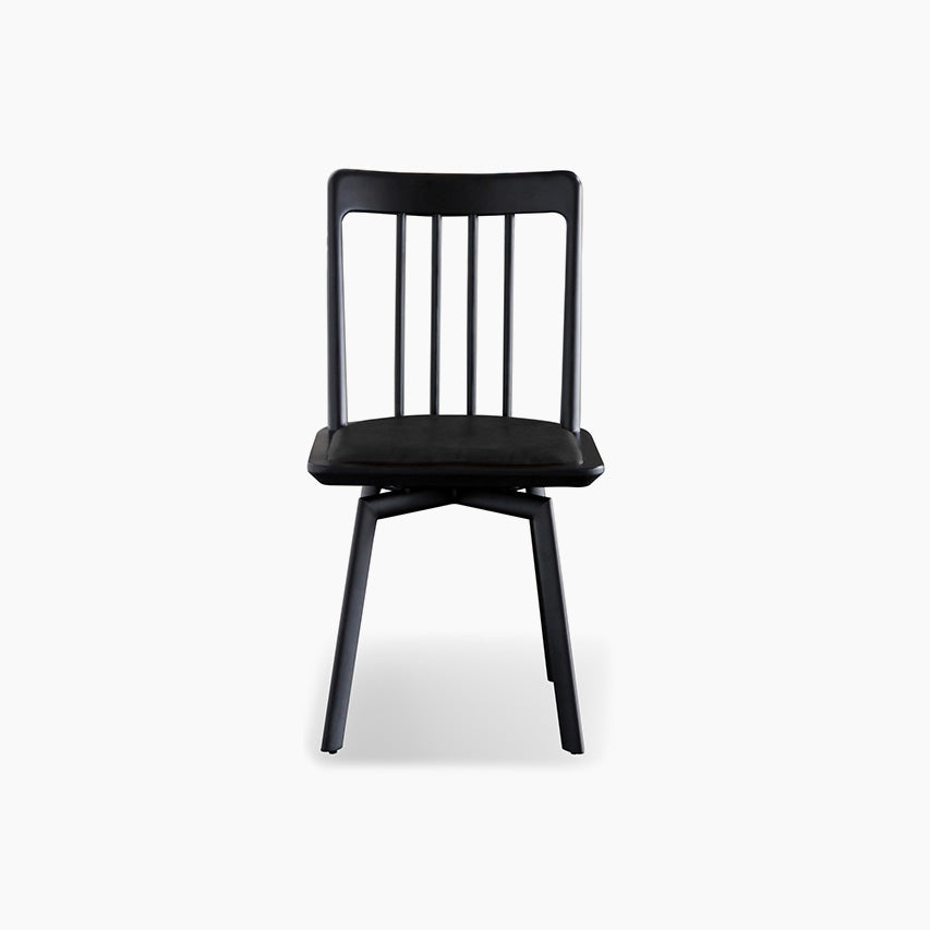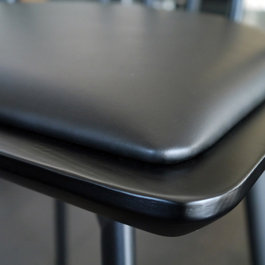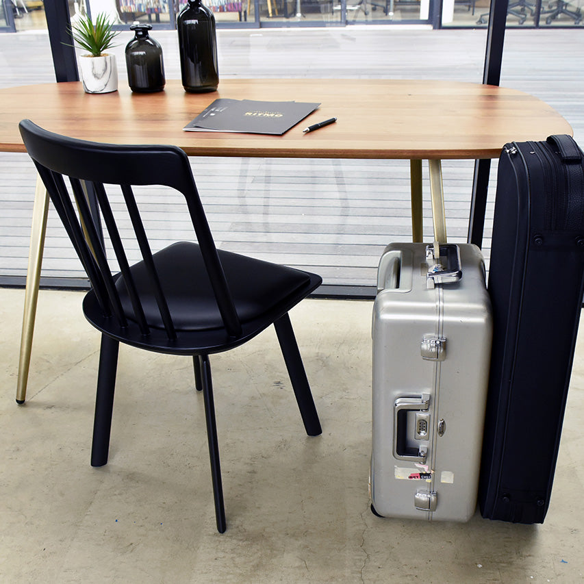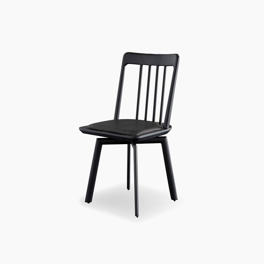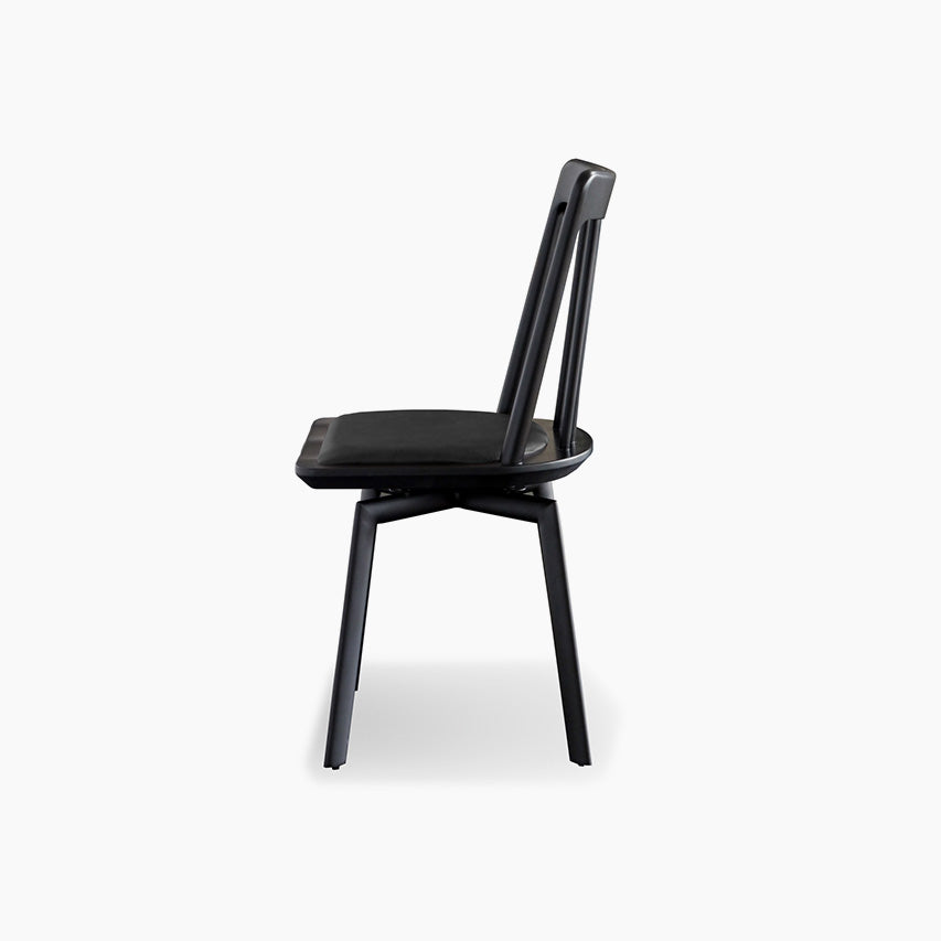 シャープなフレームに布張りを合わせたシンプルなチェアです。毎日の食事シーンに寄り添う、扱いやすい座り心地です。