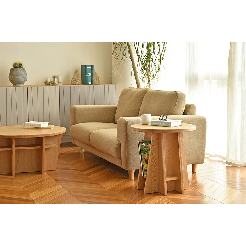 同シリーズのローテーブルと合わせてコーディネートできるサイドテーブルです。飲み物やスマホ置きに便利で、部屋の使い勝手を高めます。