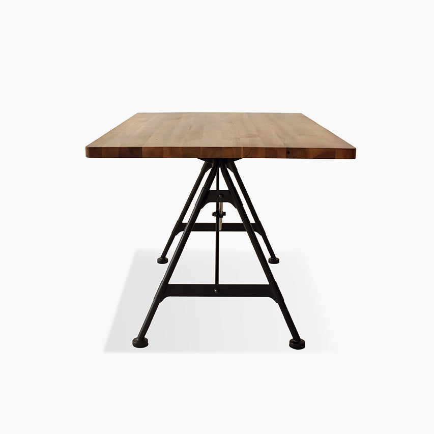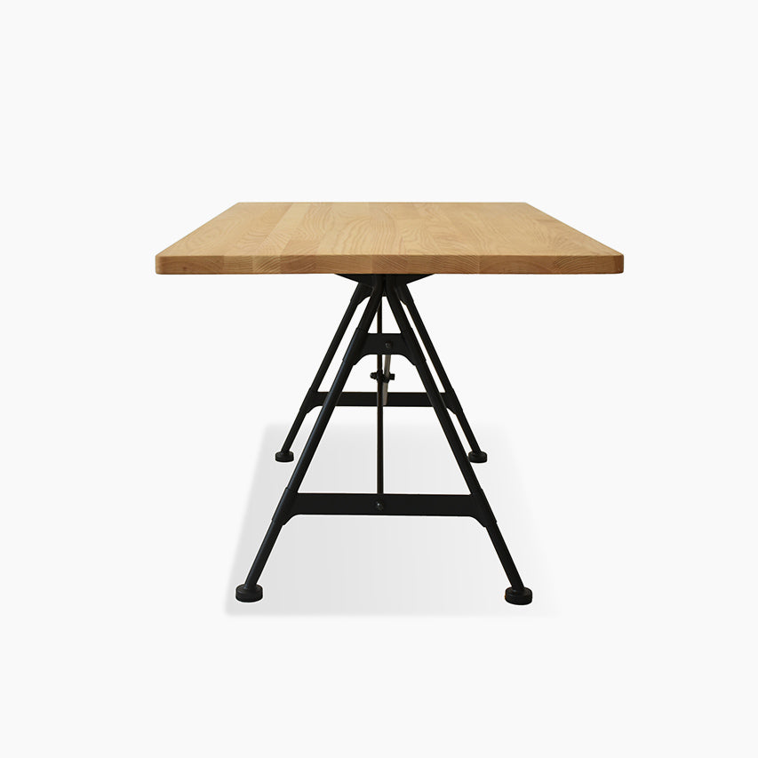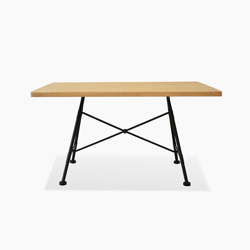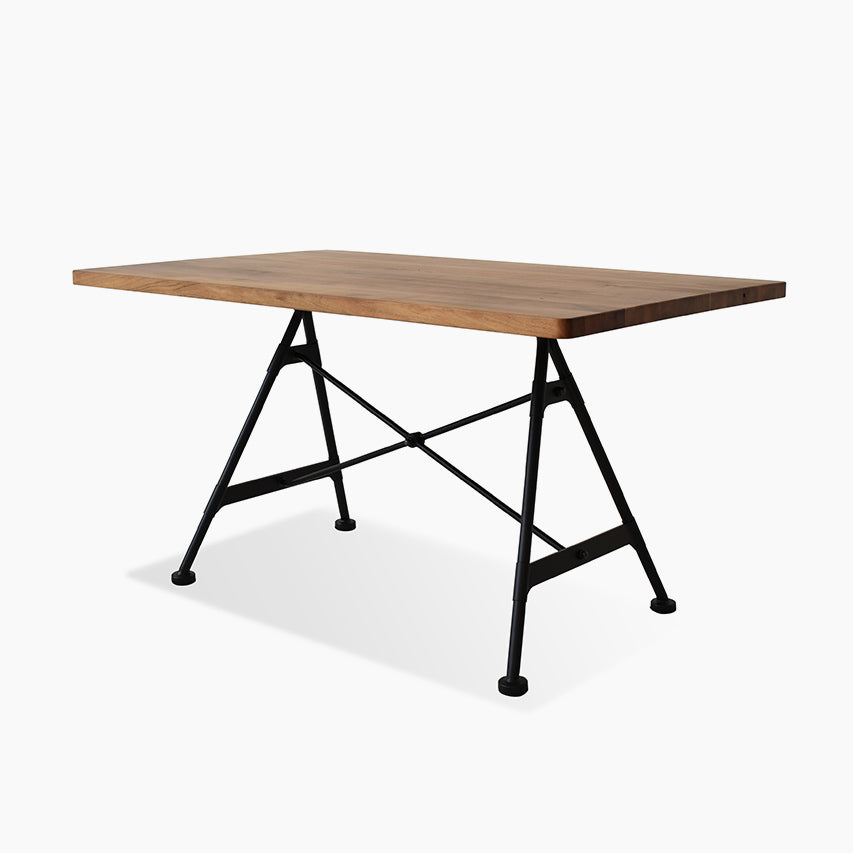 ウォールナットまたはアッシュ材の天板にスチール脚を合わせたダイニングテーブルです。幅120×奥行75×高さ70cmの標準サイズで、木質感と黒脚のコントラストが空間を引き締め、カフェのような雰囲気を演出します。