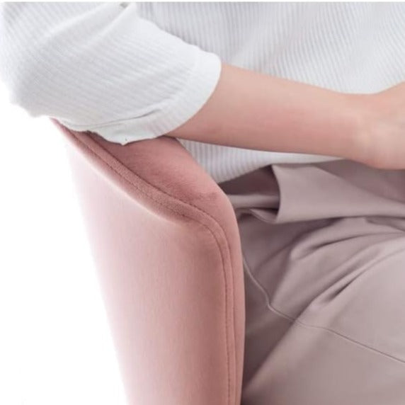 低反発ウレタン使用で座り疲れしにくい座面のデスクチェアです。広い背面設計で座り心地抜群です。女性らしいデザインでドレッサーやデスクに合うアイテムです。