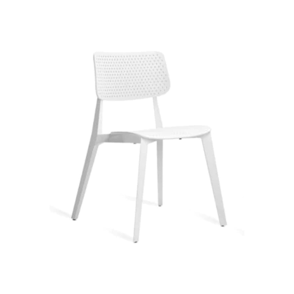 しっかりとデザインの本流を感じさせるエレガントなデザインと、軽量ながら力強いライン、屋外でも使える自由さ、リーズナブルさも相まって、非常に魅力的なチェアです。背面と底面にある星に似た三角形が、構造部分の耐荷重性を強調しており、座面と背もたれが持つ人間工学的な柔らかさとのコントラストが美しいかたちになっています。