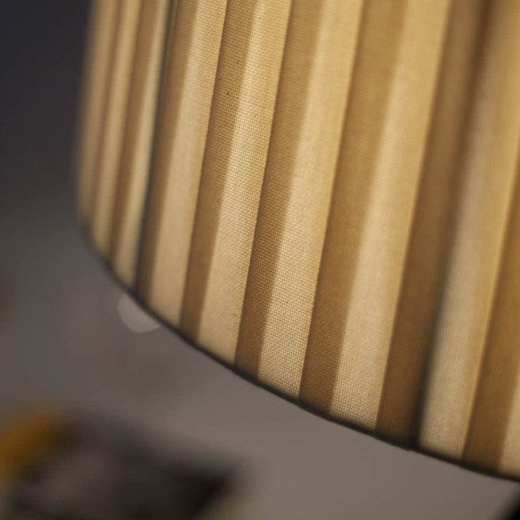 リボンシェードが特徴的なスタンドライトです。細く美しい3本のクロスしたスタンドの上で上品に存在するリボンシェードは、1本のリボンを継ぎ目なく丁寧に手作業でフレームに巻かれて製作されています。ナチュラルとレッドのシェードはリボンの重なりが陰影となり、縦縞の美しいコントラストを見せてくれます。