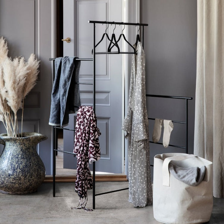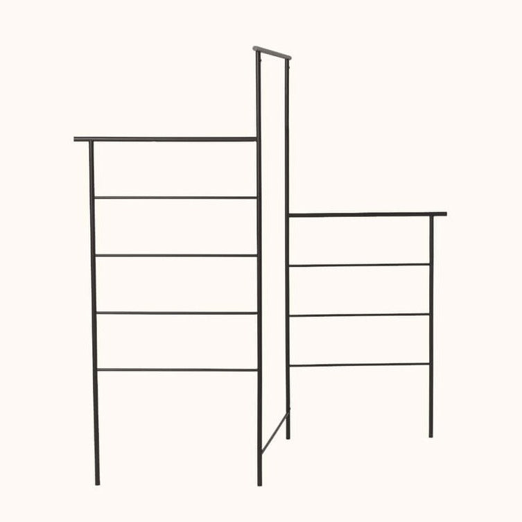 自立する折り畳み式のハンガーラックです。日本の美学からヒントを得てデザインされたというこちらのアイテムは、どんな場所でも使えるミニマルなデザインです。日本の家庭でも使いやすいに折りたたみ式で、必要に応じて広げたり狭めたり、また立てかけるなどして使用できます。