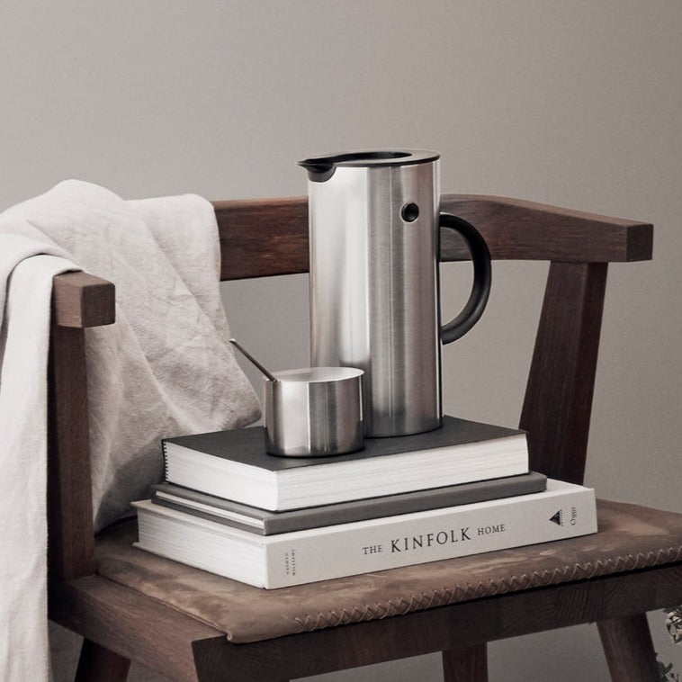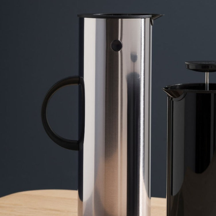 ミニマルなデザインが特徴的なジャグです。保温、保冷機能がシンプルデザインに詰め込まれています。ジャグの傾き加減で自動的に開閉する便利なロッカーストッパーと、屋外での使用や保温・保冷に最適なピクニックストッパーの2種類のストッパーが付いていて、用途によって使い分けができます。