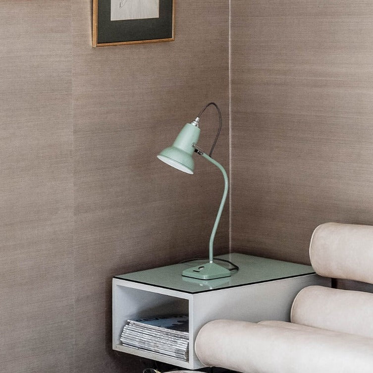 特徴的なシェードフォルムと現代風アレンジを加えた新しいテーブルランプです。ゆるやかなカーブを描いた固定アームに、スイッチ付のピラミッド型ベースが特徴です。光源の位置を変える必要のないベッドサイドやテーブルでの使用に最適で、レトロな感覚のデザインがコーディネートの幅を広げてくれます。