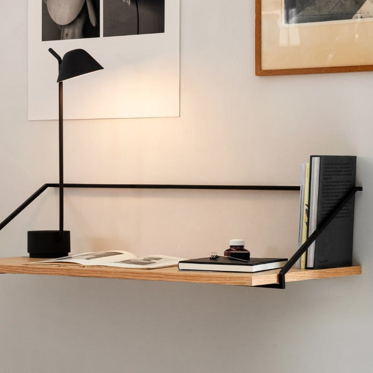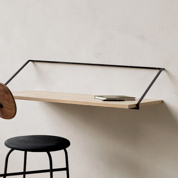 壁面にスマートに取り付けるウォールデスクです。あまり場所を割くことのできない寝室やリビングの一角をパーソナルなデスクスペースへと変えてくれます。お好みの高さに固定することが可能なのでデスクとしてはもちろんシェルフやカウンター、本棚としても利用可能です。