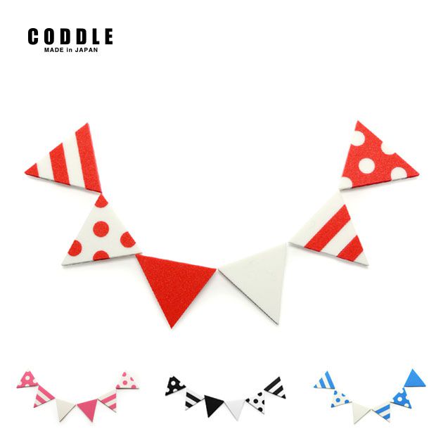 EVAで出来たマグネットです。すべて柄のちがう三角形なので、並びをかえると色んな組み合わせのガーランド気分が味わえます。