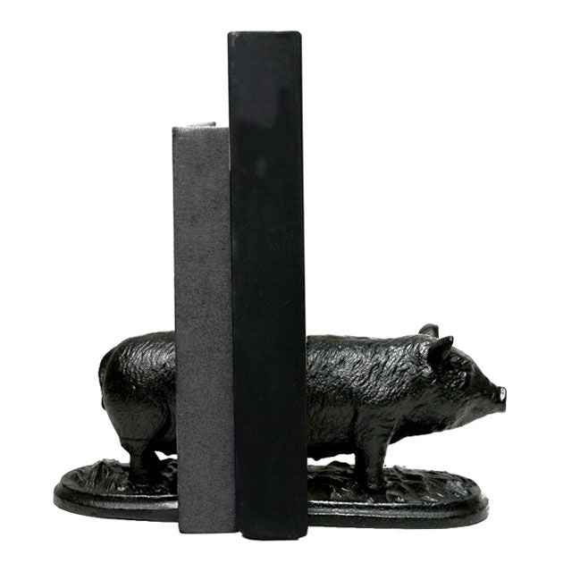 IRON素材に、生まれ変わった「BOOKEND PIG」。食から得たインスピレーションを、食とは関係のないブックエンドに投影されています。真っ黒な胴体部分を切り離すと、断面には鮮やかなグラフィックが現れます。豚の体を二つに分け、本を挟み込むとで本を押さえます。