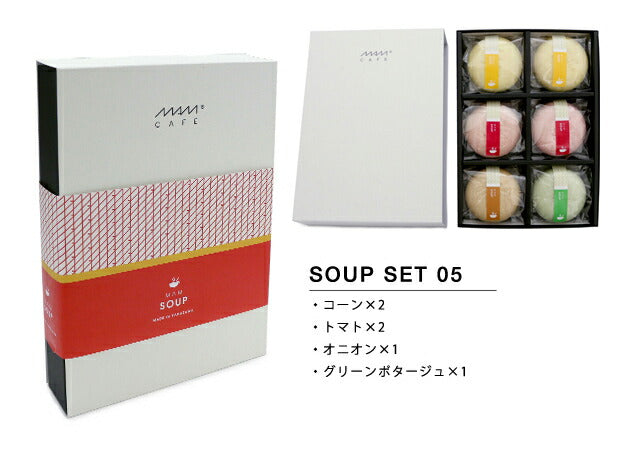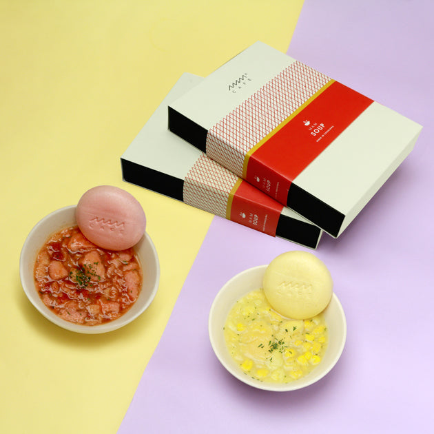 もち米を使用して1つ1つ手作りで作られた最中の中に、美味しいスープを閉じ込めました。マカロンのような可愛らしい見た目で、ギフトを選ぶ人、そしてそれをもらって食べる人、みんなが「どれにしようか?」と楽しい悩みに頭を抱えます。「MAM SOUP 05」シリーズはみんな大好き王道スープシリーズ。コーン、オニオン、トマトスープなどの定番スープと、ほうれん草のグリーンが鮮やかなグリーンポタージュをご用意しました。