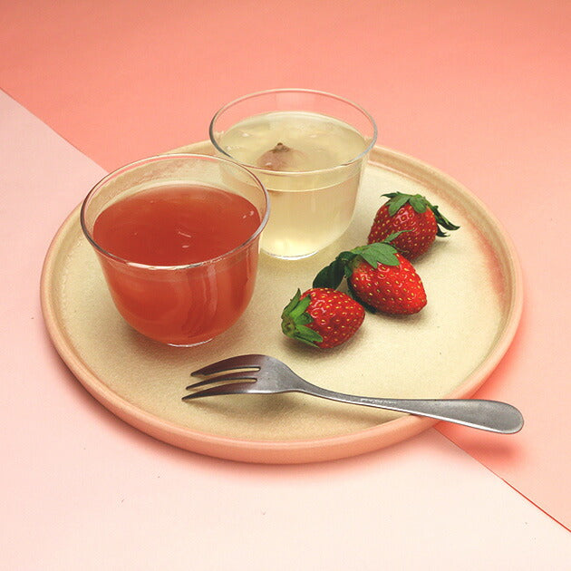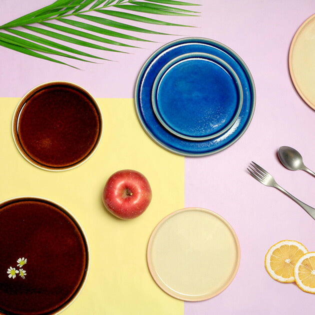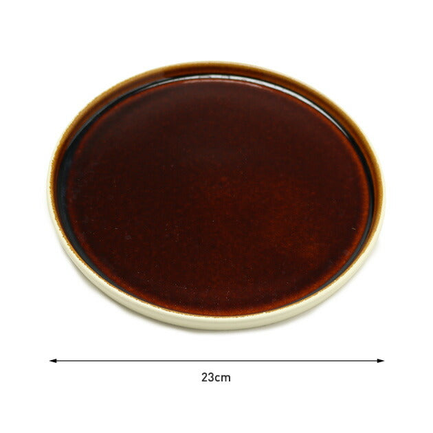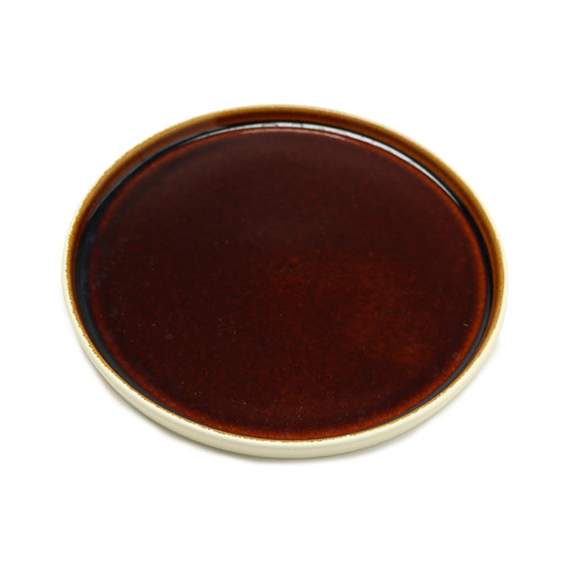 滋賀県甲賀市信楽町で作られる日本六古窯のひとつの信楽焼で作られたお皿です。「土の匂い」あふれる暖かみのある風合いは他の焼き物にはない大きな魅力となっています。信楽焼は釉薬の種類が多く、土と炎が織りなす芸術として侘び寂びの趣を今に伝えています。土感がより美しく見えるよう、表側に艶やかなガラスのような釉薬を使っており、縁をマットな仕上がりにしています。ツートーンカラーなので、交わった溜まり部分の色味がまた面白いお皿になっています。色の出方には個体差がありますので、ご理解ください。食パンとサラダが載せられるサイズのディッシュプレート(23cm)と、ケーキやお菓子に丁度良いサイズのデザートプレート(17cm)をご用意しました。