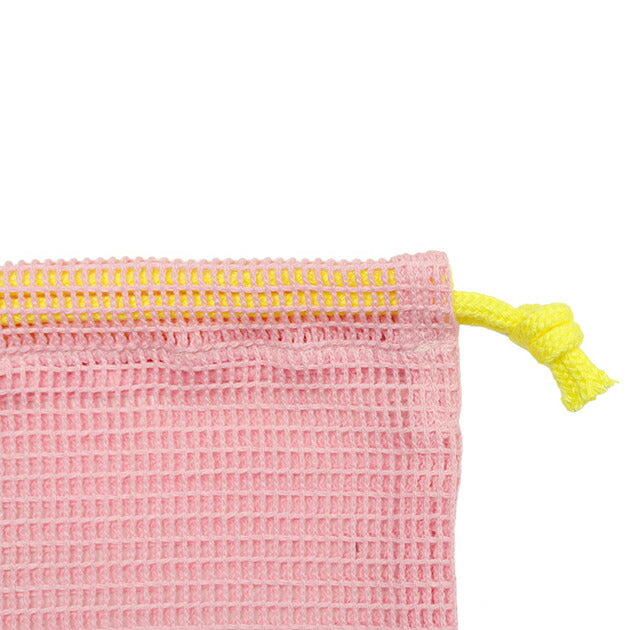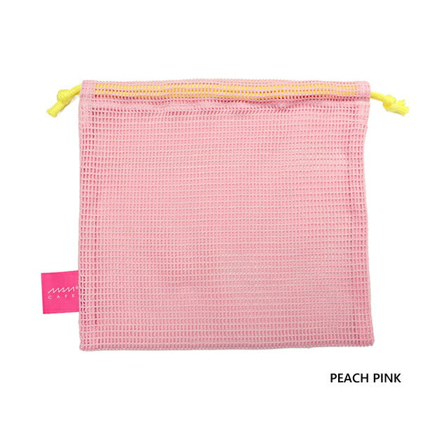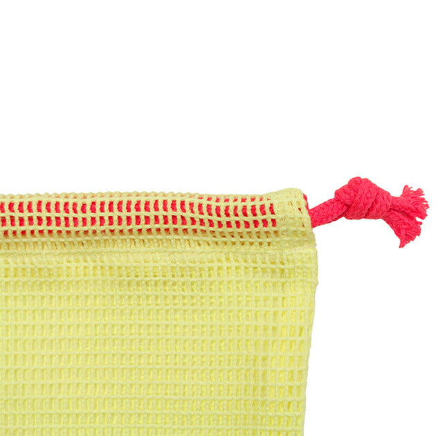 コットン100%のメッシュ生地でできたポーチ。汚れても洗いやすく、撥水性に優れています。ランチボックス入れや旅行用のインナーポーチとして。コーディネートのワンポイントとして、そのままバッグとして持ち歩いてもかわいいです。
