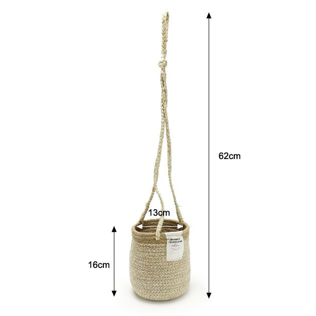 吊るして使用できるプラントポットです。底が深いので、安定してものを入れられます。お部屋やベランダに吊るせばナチュラルな雰囲気を作り出してくれます。植物だけでなく、小物入れなどにも使用していただける商品です。