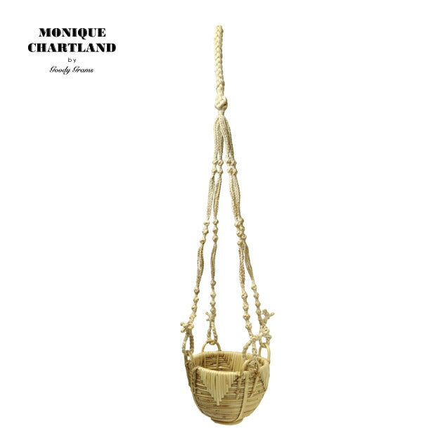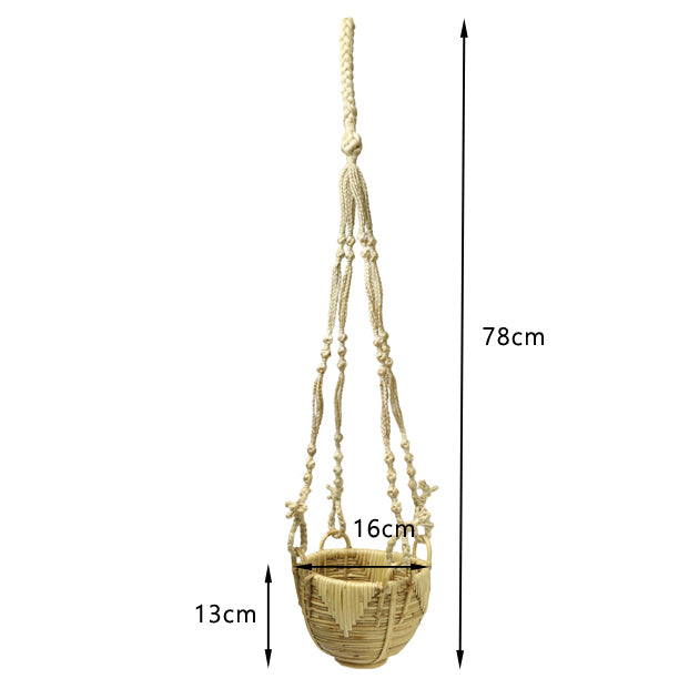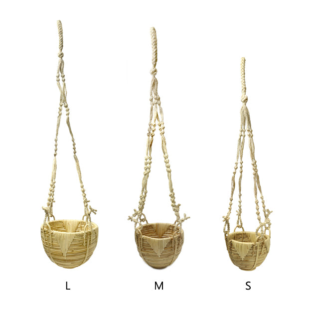 籐のハンガーバスケット。籐の存在感を残しつつもしっかりと編み込まれて少しツヤがかった仕上がりです。グリーンとの相性が良いのでプラントハンガーとしてご利用いただくのもおすすめです。