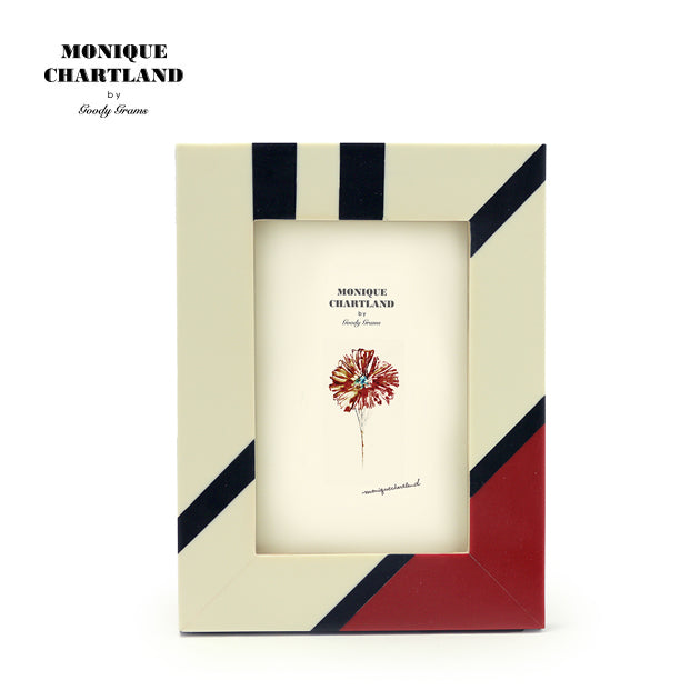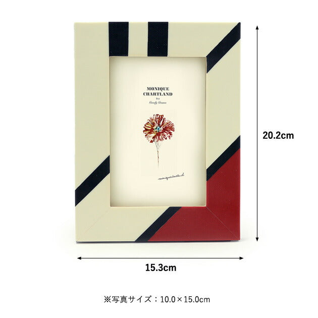 レジンを組み合わせてできた、濃い赤色がアクセントの印象的なフォトフレームです。