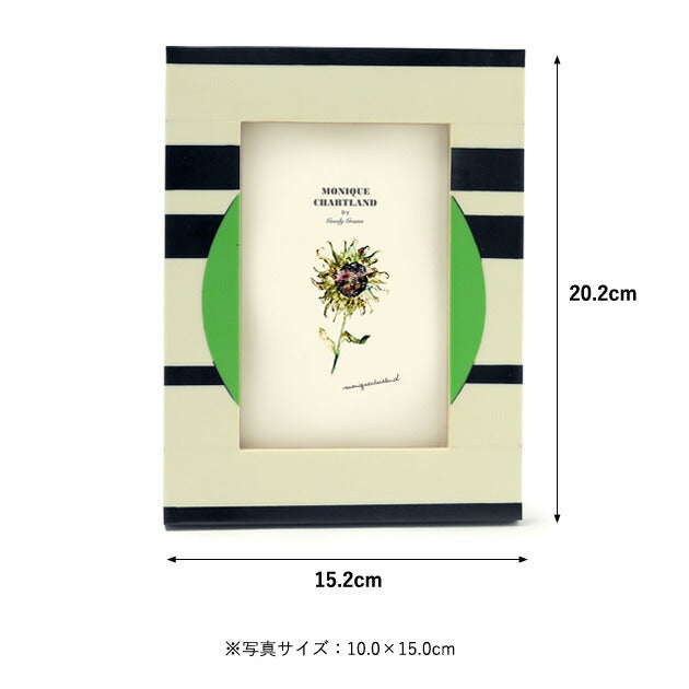 レジンを組み合わせてできた、ポップな緑がアクセントの印象的なフレームです。