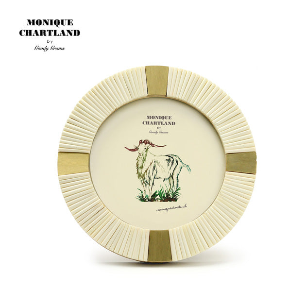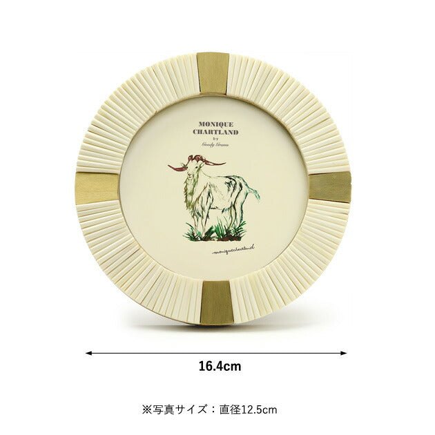 細かいボーンを連ね、アクセントに真鍮を施したシンプルながら独特の質感がある円形フレームです。