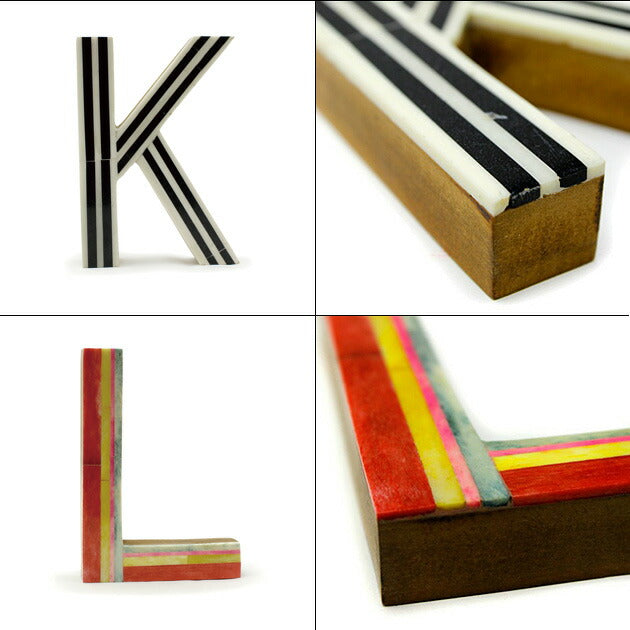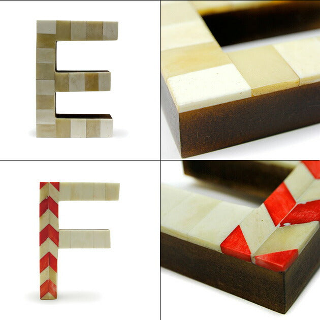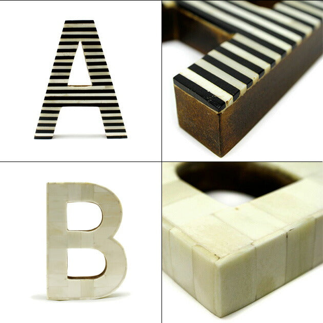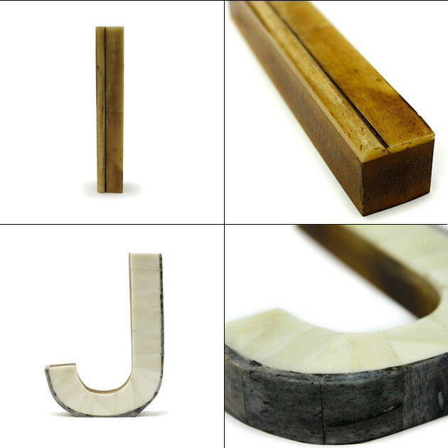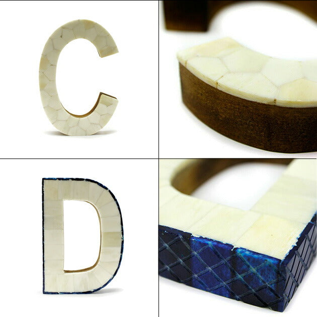 動物の骨を利用して作られたアルファベットのオブジェ。天寿を全うした水牛の骨が、職人の手によって生まれ変わりました。イニシャル、誕生日、ラッキーナンバーなど、誰しも思い入れのあるアルファベットや数字を持っているのではないでしょうか。骨という身近ながら普段目にすることのない素材は、日常を特別な雰囲気にしてくれます。結婚式のウェルカムディスプレイや開店祝い、お店のディスプレイなどにもおすすめです。背面にはDリングが付いているので、吊り下げることができます。インドの第一宗教であるヒンドゥー教では、動物、とくに牛は崇拝の対象となっているため、食べることはもちろん殺してはいけません。それらが死んだときに残る骨や角は神聖なものであるため、捨てずに工芸品や装飾品へと形を変え、未来永劫に生きています。それらを身に付けることで自分を守ってくれる、いわば日本のお守りに近いものといえます。歴史上、イギリスの植民地政策を受け、ヨーロッパ文化の影響を受けてきたインドだからこそできる色のバランスや洋風なデザインは、他国では作ることのできない特別な製品となっています。