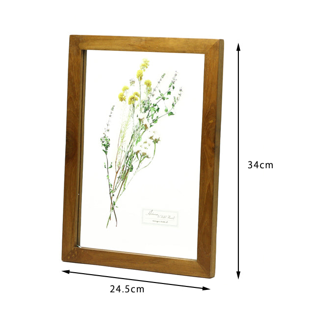 シンプルなウッドフレームに、印象的な様々なドライフラワー。細部まで綺麗に映し出せる高い転写技術を使い、ガラスにドライフラワーをプリントして仕上げました。花の形と色合いを半永久的に楽しめます。