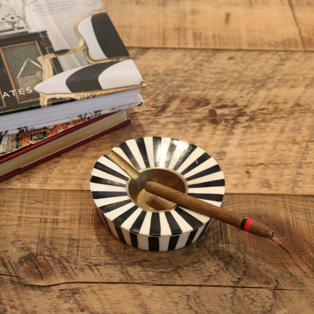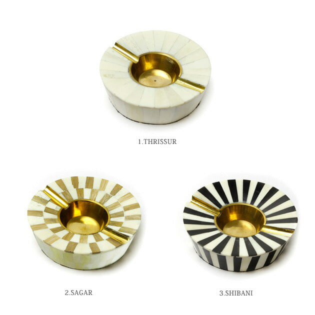 卓上灰皿という物も、最近は探しづらくなっていて、アルミやメラミンなどでできた安価な物と、応接室にあるような大げさなものに二分している様に感じます。牛骨に、真鍮など異素材を組み合わせた灰皿は、他には無いオリジナル性を持ちつつ、形状のシンプルさから飽きの来ないデザインに仕上げています。毎日使う人もいれば、来客時にそっと差し出す場合もありますが、使っていないときにインテリアとして空間に馴染むというのは、喫煙者にも非喫煙者にもありがたい存在です。雰囲気ある素材なので、小物入れとしてもおすすめです。