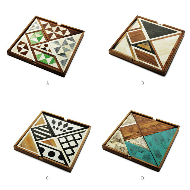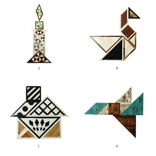 7つのピースを使ってさまざまな形を作ることができるタングラムは、18世紀ごろから親しまれているパズルゲームです。動物をはじめ、文字を作ることもできます。ちょっとした家族との遊ぶ時間にぜひ。インドの第一宗教であるヒンドゥー教では、動物、とくに牛は崇拝の対象となっているため、食べることはもちろん殺してはいけません。それらが死んだときに残る骨や角は神聖なものであるため、捨てずに工芸品や装飾品へと形を変え、未来永劫に生きています。それらを身に付けることで自分を守ってくれる、いわば日本のお守りに近いものといえます。歴史上、イギリスの植民地政策を受け、ヨーロッパ文化の影響を受けてきたインドだからこそできる色のバランスや洋風なデザインは、他国では作ることのできない特別な製品となっています。