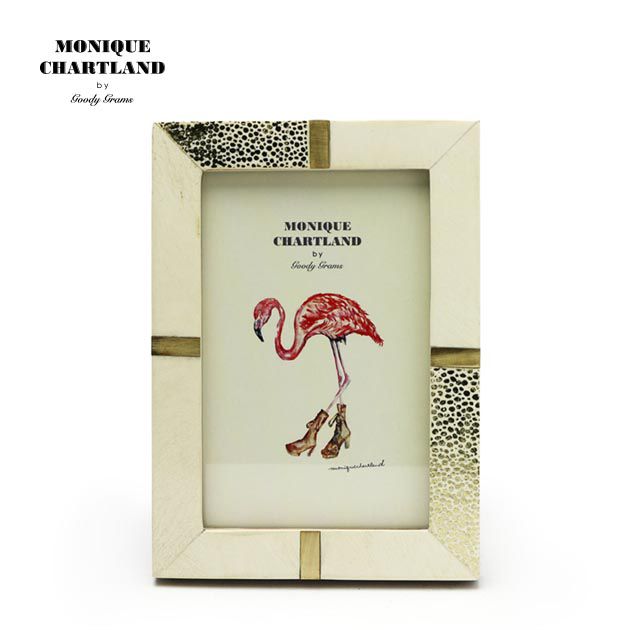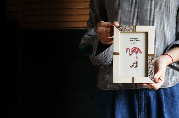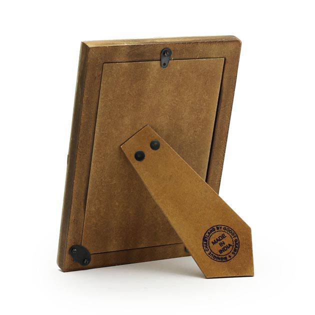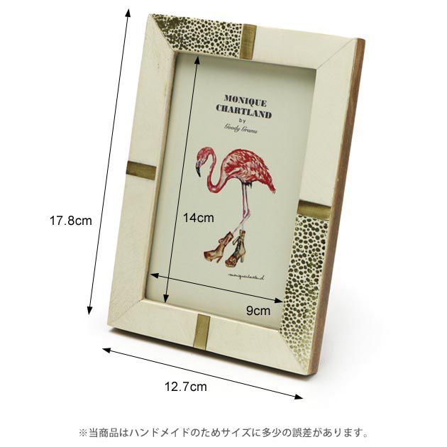 レジンをベースに真鍮や金箔でアクセントを施したフォトフレーム「DARIKA」。骨董品のようなたたずまいでありますが、ゴールドを使用しているのでモダンなインテリアにも合わせやすいです。ハンドメイドで作られており、ところどころみられるゆがみや塗装の剥げが量産品にはない味を出しています。背面にはスタンドが付いていて縦置き横置き両用です。