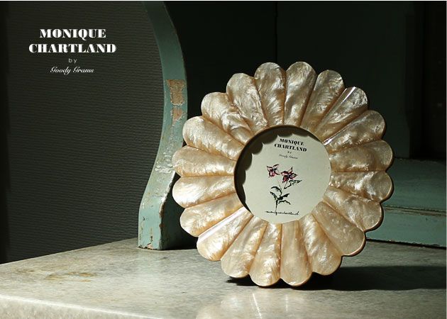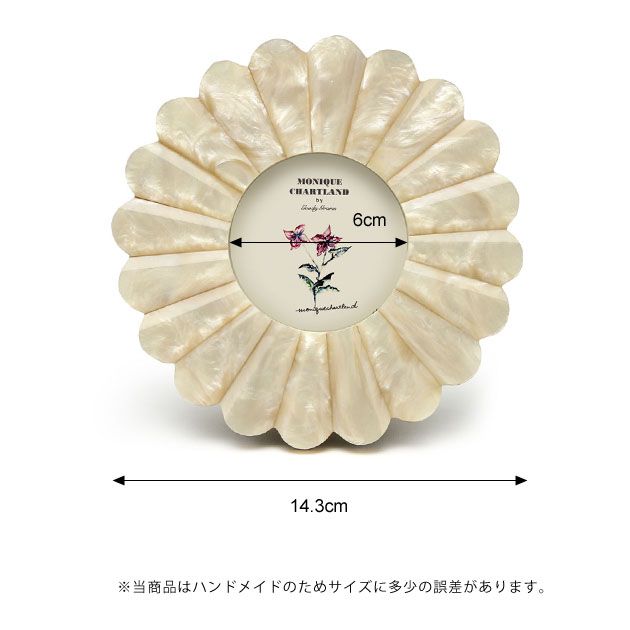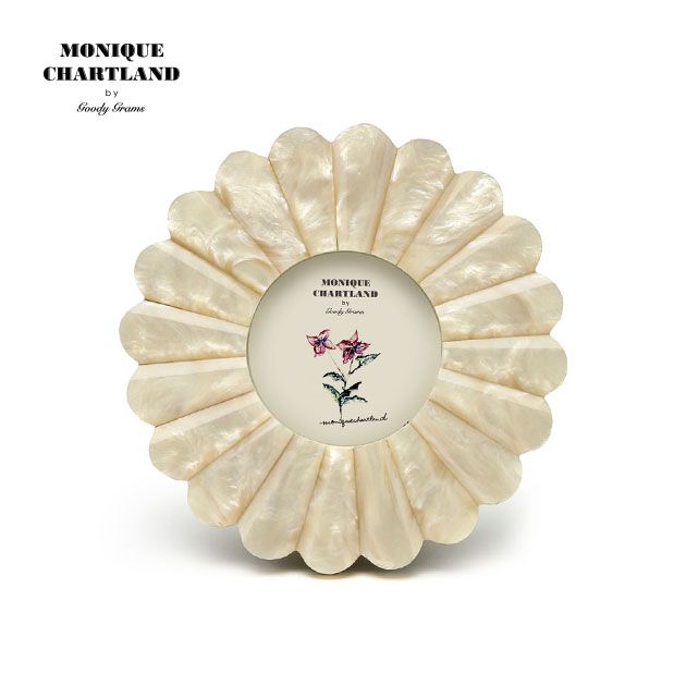 光の反射によってメタリックにも見えるマーブル模様が特徴のフォトフレーム。花びらのような形状が可愛らしいです。背面にはスタンドとDリングが付いているので、置き型と壁掛け両方の使い方が可能です。