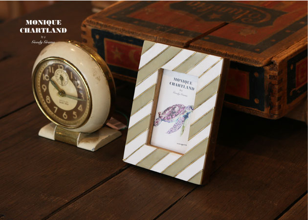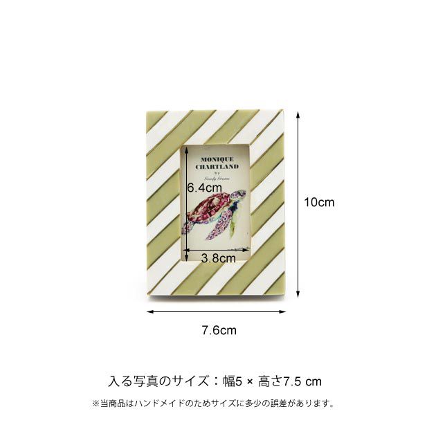斜めのストライプと、ラインを縁取る真鍮が特徴のミニフレーム「PHOTO FRAME VIYAN」。小さいサイズなのでデスクやトイレなどに飾ったり、大きいフレームと並べてディスプレイを楽しむのもおすすめです。職人が作るハンドメイド製品のためところどころラインのゆがみや塗装の剥げが量産品にはない味を出しています。
