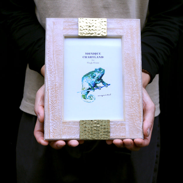 1点1点ハンドメイドで作られた、大量生産品にはない暖かみのあるフォトフレーム。モダンなお部屋からナチュラル、レトロまでテイストを選ばず幅広く馴染むアイテムです。背面にはスタンドと三角吊り金具が付いていますので、置き型と吊り下げの使い方が可能です。