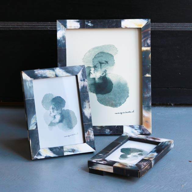 動物には生あれば、定めを受ける。こちらのフレームはインドの民芸品として伝わる、動物の骨や角を活用したフォトフレーム。角を贅沢に使い、その肌触りと質感は他のどの素材にも出せないものです。背面にはスタンドとDリングが付いているので、縦置き、横置き、吊り下げの3種類の使い方が出来ます。