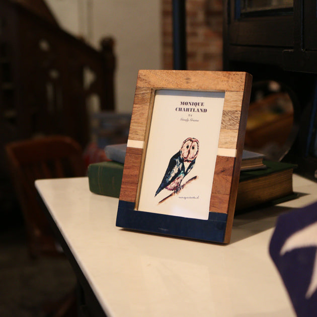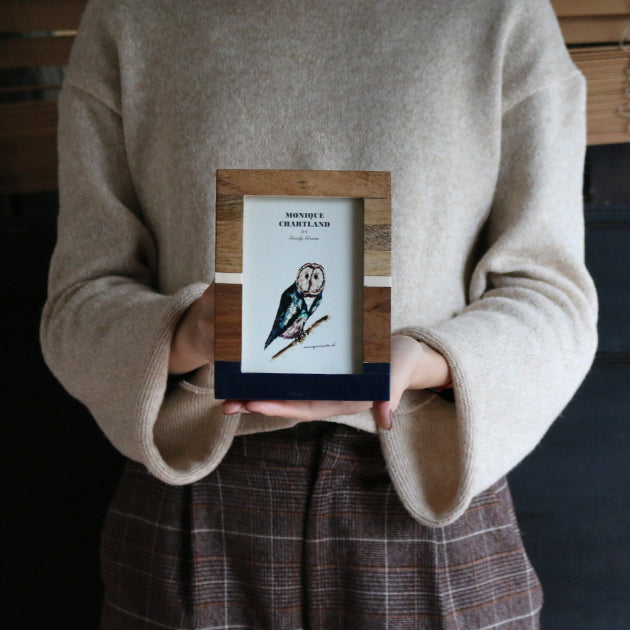 ビンテージのオールを思わせるウッドとその上にペイントされたカラーがモダンなデザインのフレーム。ベースに高級素材で知られるSHEESHAMWOODをふんだんに使用しておりインテリアのアクセントになるシリーズ。背面にはスタンドと三角吊り金具が付いていますので、置き型と吊り下げの使い方が可能です。