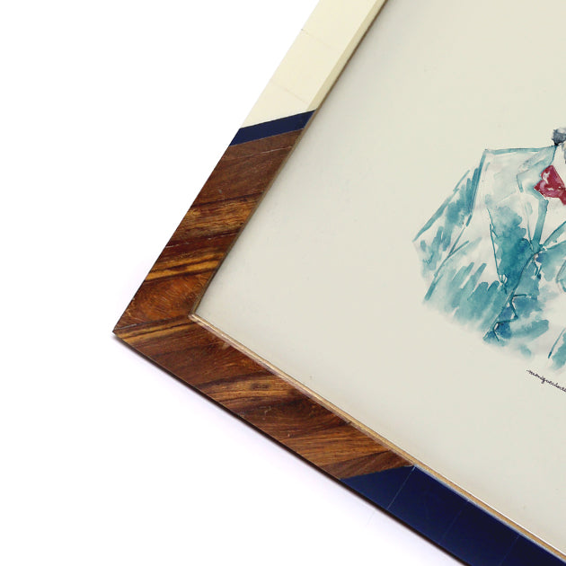 ビンテージのオールを思わせるウッドとその上にペイントされたカラーがモダンなデザインのフレーム。ベースに高級素材で知られるSHEESHAMWOODをふんだんに使用しておりインテリアのアクセントになるシリーズ。背面にはスタンドと三角吊り金具が付いていますので、置き型と吊り下げの使い方が可能です。