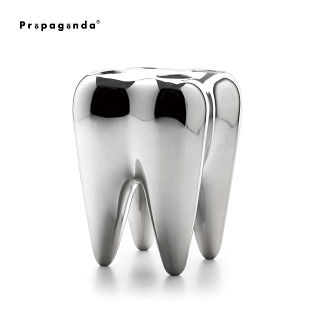 歯をモチーフにした陶器の歯ブラシ立て。手のひらサイズながら、適度な重さがあるのでグラついたり、倒れたりする心配はありません。見た目のインパクトがあるのでデザイン重視かと思いきや、それぞれが重なり合うことなく収納できたり、底の小さな穴から排水ができたりと機能もちゃんと考えられています。清潔に使えて、毎日を少しだけ楽しい気分にさせてくれるアイテムです。なお、分解して洗うことはできませんのでので汚れが気になる場合は漂白剤に浸けて洗浄してください。
