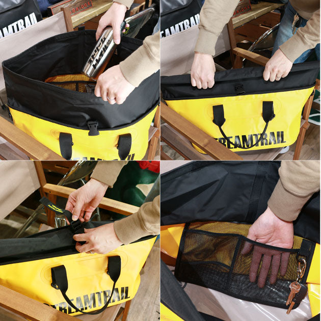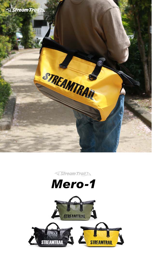 横長サイズの防水ショルダーバッグ、「Mero-1」が登場です。防水性・耐久性に優れたターポリン素材を使用しており、開口部はロールダウン・ロールアップして開閉するため、より密閉度が高くなっています。取っ手を持てばトートバッグに、付属のショルダーベルトをつけるとショルダーバッグになる2way仕様で用途に応じて使い分けが可能。開口部が大きく開き安定性もあるので荷物の出し入れもスムーズに行えます。釣り、アウトドア、ダイビングなどアクティブスポーツに最適なバッグです。