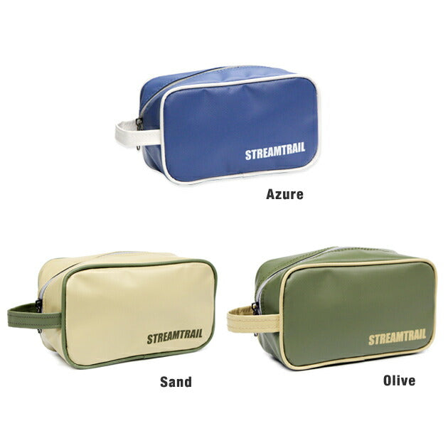 Stream Trailの防水リュックにも使われている防水素材、ターポリンを使用した小型ポーチ。旅行や出張などで持ち運ぶトラベル用シャンプーや歯ブラシなどのアメニティーセットを入れたり、女性ならメイクポーチとして化粧品を入れたりなど、小物入れに最適です。カラーバリエーションも豊富にご用意しています。