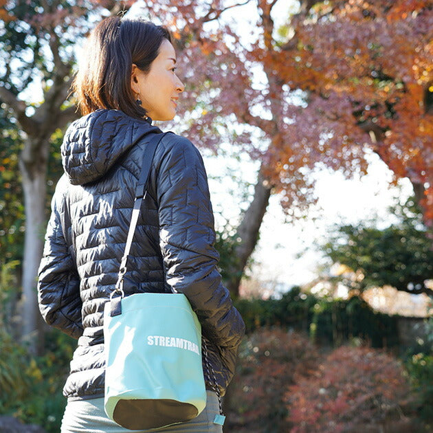 円柱型のショルダーポーチ。バッグを置いた際、安定性が良く、荷物の出し入れが容易です。車内などでも財布や携帯など小物の整理に重宝します。