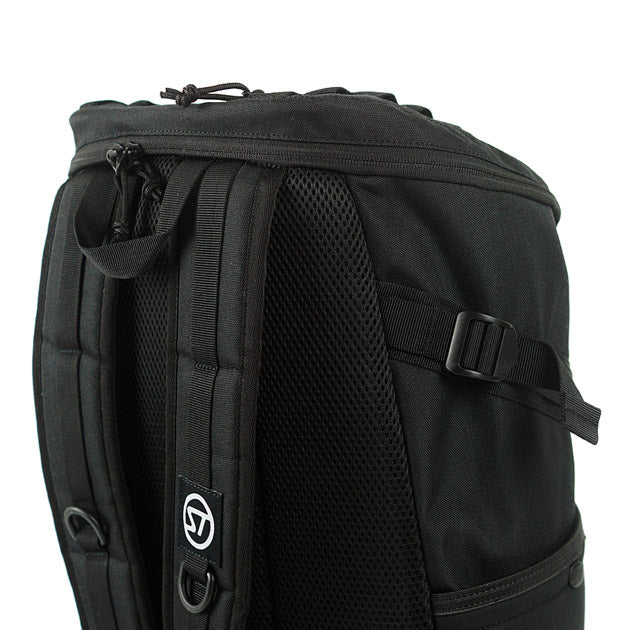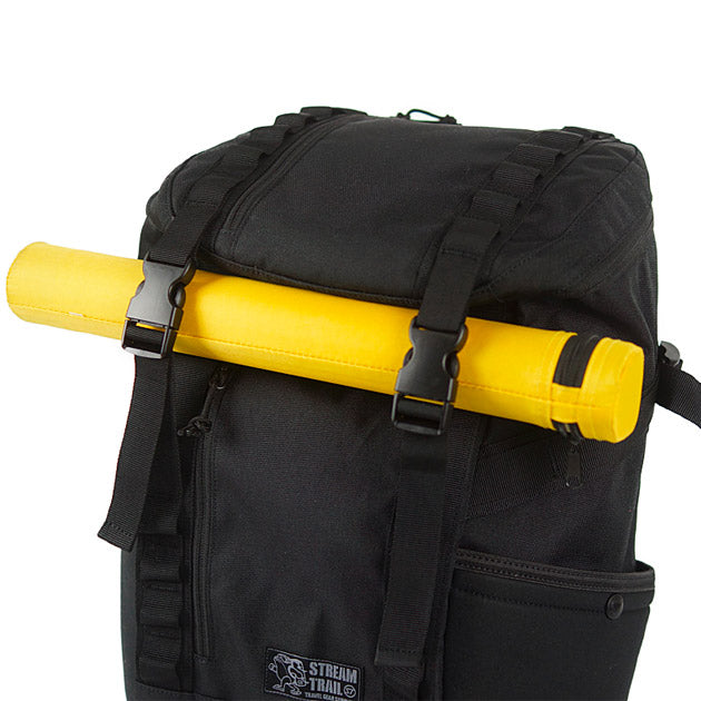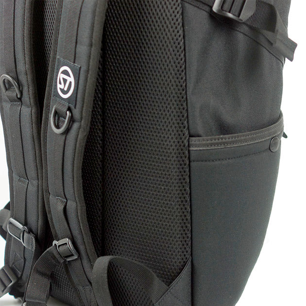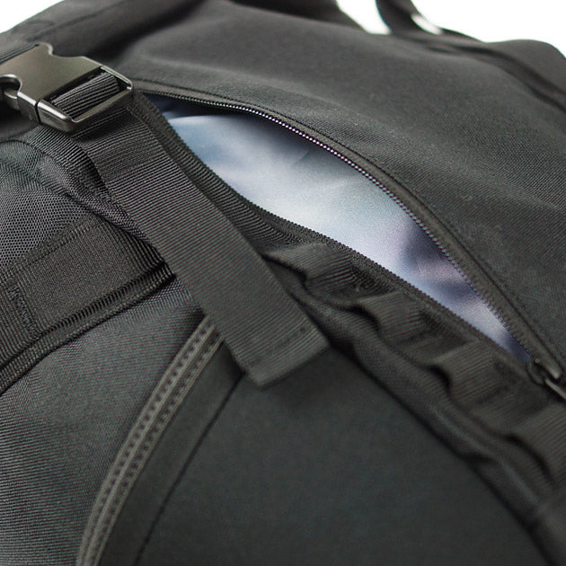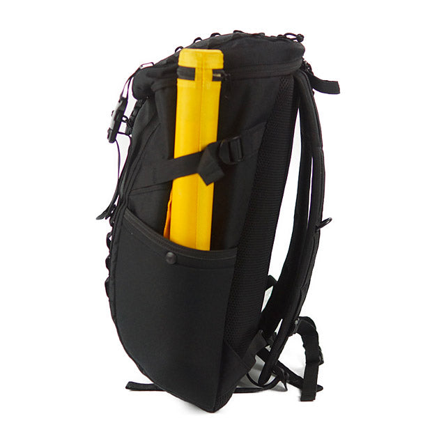 ・デイパックでは容量の大きいタイプとなります。・腹開きのファスナータイプのフラップには起毛素材のライナー付のアウターポケット。中身が確認しやすい半透明内側ポケットがついてます。・フラップを腹開きすることで バックを胸側に抱っこした状態でも中身を取り出し易くなります。置いた際にもフラップが邪魔にならずに中身が取り出し易くなります。・やむおえず床に置く時などは背にあたる側が上になることで再び背負う時に汚れることがありません。・両サイド硬めのネオプレーン素材のボトルホルダーポケット付き ・ファスナー付きフロントポケットにはキーチェーンスナップ付き ・テール(底側)を絞ったファストバックスタイルにすることで満載の際に重心を上側にして背負い易く設計してます。・内側にはPCポケットとA4対応のドキュメンポケット、両サイドにデバイスホルダーポケットを装備することでバランスよく収納することができます。