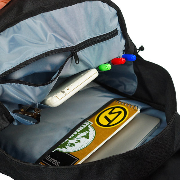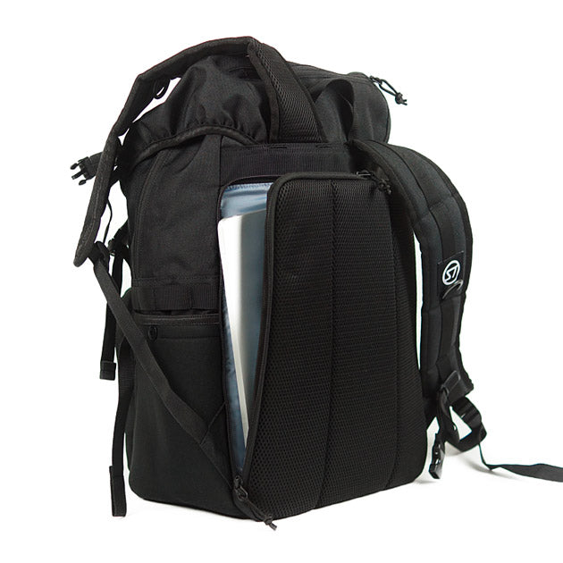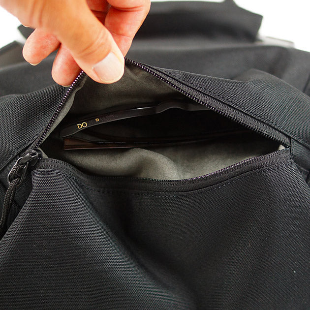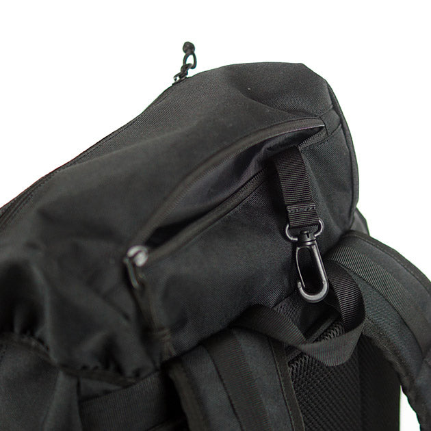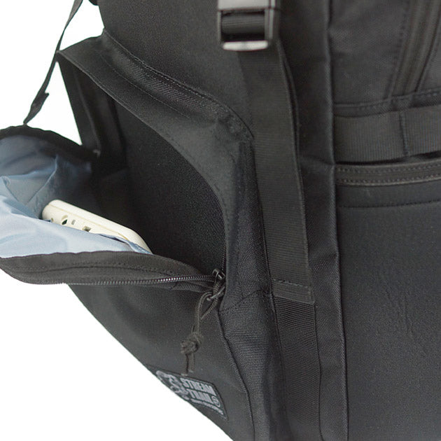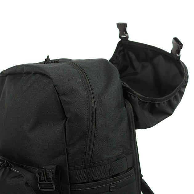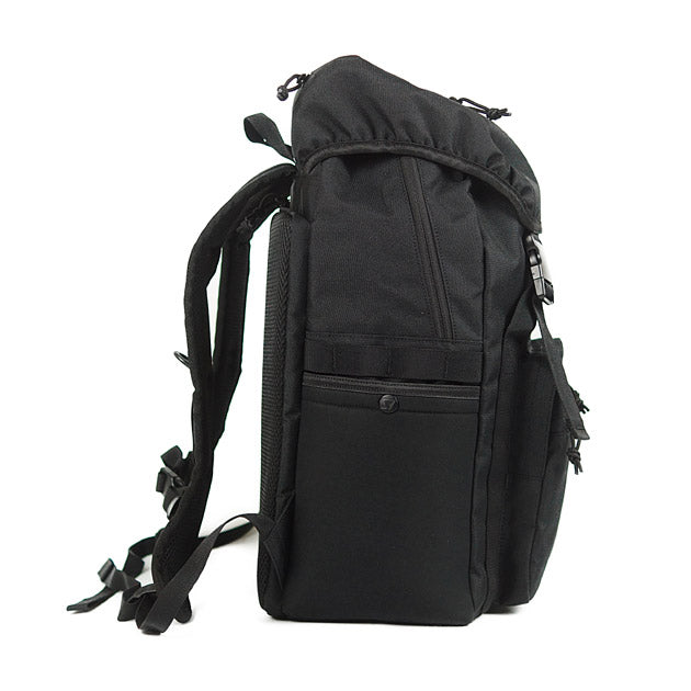 ・フルスペックなタクティカルデイパック。ジェットセッター、リモートワーカーに最適化したバッグです。・被せタイプで、被せのフラップには起毛素材のライナーのサングラスポケットとキーチェーンスナップの付いた大ぶりなポケットがあります。すぐに取り出したい財布などを入れるのに適していますが、コンパクトな薄手のウィンドブレーカーなども収納可能です。・両サイド硬めのネオプレーンそ材のボトルホルダーポケット ・二つのファスナー付きフロントポケット ・メインポケットはやや斜めにつけることで開いたときに中身を取り出し易くしてます。・内側にはPCポケットとA4対応のドキュメンポケット、ステーショナリーポケット、ファスナーポケットを装備 ・背中のパット側にはPCポケットを装備